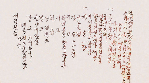 셋째, 내가 이제 온 천하의 많은 동포들이 가달길에서 마침내 괴로움에 떨어지는 죄를 대신 받을지라. 이에 한 오리의 목숨을 끊음은 천하를 위하여 죽음이라. [喆 今代普天下同胞兄弟姉妹 迷眞沈妄 竟墮苦暗者之罪 玆決一縷之命 以殉于天下者](*가달길: 妄道)
