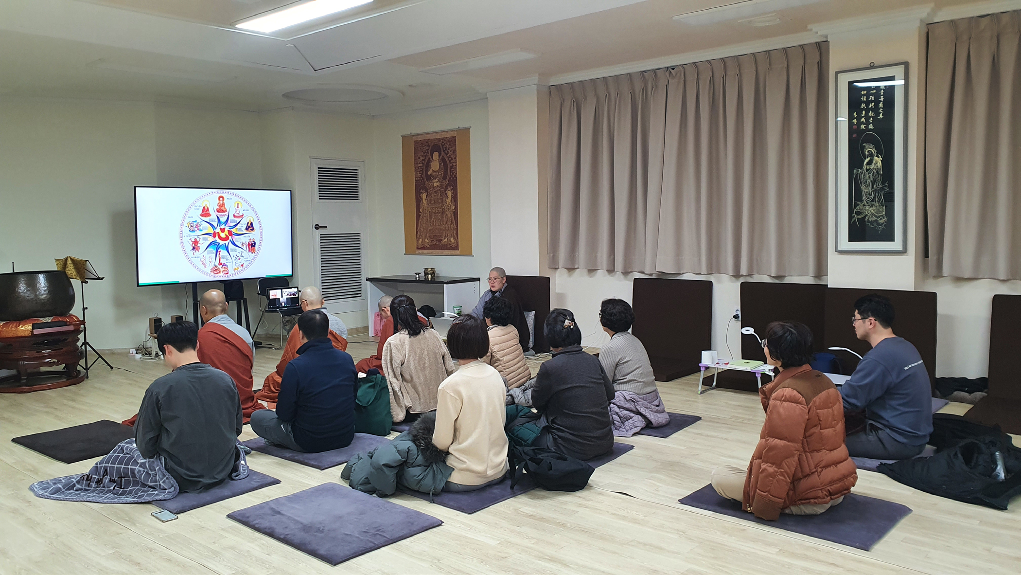그렇지만 대승에서는 먼저 스승을 고르는 것을 강조합니다. 한 단계를 뛰어넘는 것입니다. 불경의 가르침도 걱정하지 않습니다. 만약 스승님이 불경을 설명하지 않는다면 떠나십시오. 왜냐하면 스승의 역할이 우리에게 부처님의 가르침을 이해할 수 있게 돕는 일이기 때문입니다. 만약 스승이 불경을 설명해주지 않는다면 그 스승은 여러분에게 그 깊이를 주지 못하는 것입니다. 스승은 우리에게 그가 부처님의 가르침과 일맥상통함을 확인시켜줘야 합니다. 좋은 스승이라면 그들의 가르침이 부처님의 가르침과 일치한다는 것을 확실히 하기를 원합니다. 왜 그런지 아시나요? 부처님의 가르침을 왜곡하는 대신에 스승은 이것이 부처님이 말씀하신 것이고, 이것이 내가 하는 말이다. 이렇게 좋은 스승은 우리에게 그것이 일치한다는 것을 이해하길 원합니다. 이것도 가르침의 한 부분입니다.