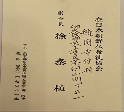 도쿄의 국평사는, 현재의 주지인 윤벽암(尹碧巖)에 의하면, 조국의 평화통일을 원하는 재일조선인들을 위한 사찰로 난암이 조국의 ‘국’과 평화의 ‘평’을 따서 이름을 지었다고 한다. 윤벽암의 아버지는 해인사의 승려였던 윤일산(尹一山26)으로, 교토에서 불교를 배우던 중 난암을 만나 제자가 되었다. 그리고 난암의 뒤를 이어 국평사의 주지가 되었다. 국평사는, 교토의 만수사를 빌려 당시 유학생 가운데 가난하고 학비가 없는 학생들을 돌봐주고 있던 난암이 도쿄에 1965년 창건한 사찰이라고 한다.27) 앞에서도 언급한 것처럼 식민지 시대 일본에 강제로 끌려와 죽은 재일조선인들의 유골을 모아 제사를 지내고 있다.