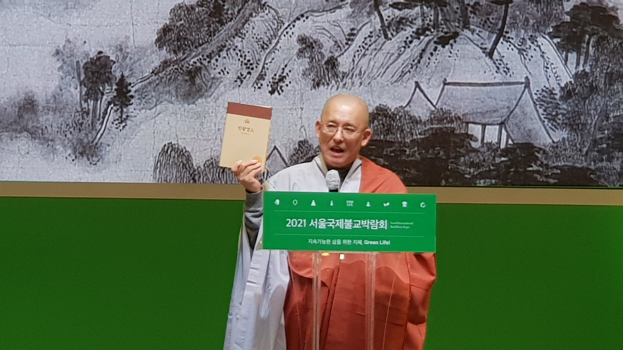 스님: 탄허스님이 하신 말씀 중에 가장 감동적인 게 있어요. 말법 시대에, 힘든 시대에 반드시 기억해야 할 구절이 있다며 말씀하신 거예요.