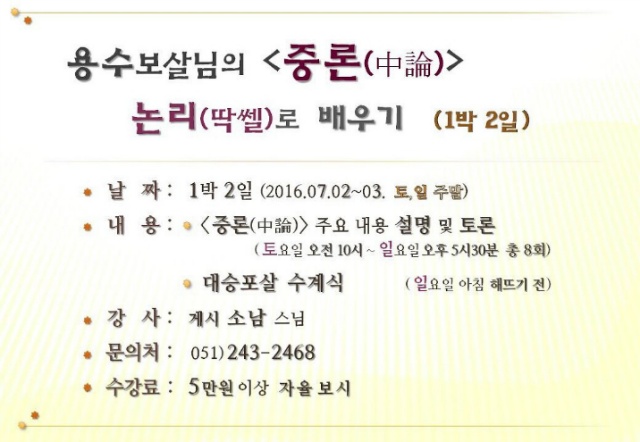 * 내용 : 『중론(中論)』주요내용 설명 및 토론