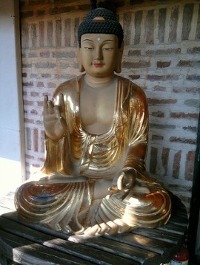 연꽃이란 물에서 수생하는 식물로서, 물을 상징하는 것으로, 연꽃 위에 앉아 있는 부처는, 우리에게 물을 깔고 앉으라는 것을 나타내는 것이며.오른손 손가락 세개를 펼쳐 보인것은,삼년에 세월을 실행하라는 것이고,이마에 빛나는 보석은 그렇게 실행하면 깨달음이 있다는 것을 나타낸 것으로, 우리에게 메세지를 주고 있는 것입니다.