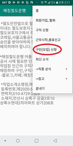 1. 구인 신청은 어플을 사용하는 것이 편리하기는 하나 어플 이용이 불편하신 분은