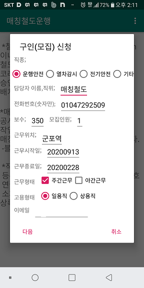 매칭철도운행 어플은 전국의 "철도운행안전관리자, 열차감시원, 전기철도안전관리자" 구인, 구직 전문 어플입니다.