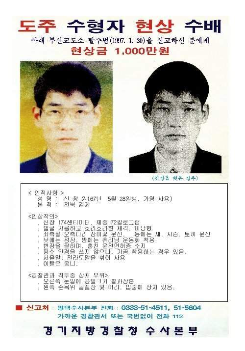 1990년대 후반 전대미문의 탈옥과 헬기까지 동원한 경찰의 체포망을 뚫고 2년6개월간 신출귀몰한 도피행각으로 전국을 떠들썩하게 만든 탈옥수 신창원(42).