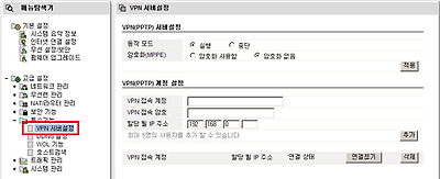 두가지 방법이 있습니다. 첫째는 VPN서버기능이 내장된 공유기를 사용하는 것이지요. 현재 ipTIME 공유기와 일본계열 버팔로가 이 기능이 내장돼 있습니다(하지만 그 회사의 모든 제품이 지원하지 않으므로 구입전 반드시 알아봐야 함). 공유기는 사정에 의해 껏다가 켠다든지하면 IP가 바뀌므로 반드시 변경된 IP를 일정하게 자동으로 연결시켜주는 기능(DDNS)가 필요하게 되는데, 다행히 ipTIME에서는 자체 DDNS를 무료로 제공합니다.