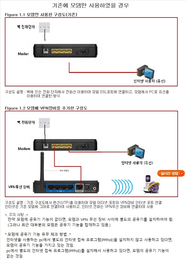 중국에 070전화기 가져가는 여행객에 대한 주의. (Ines 2nd) http://www.clien.net/zboard/view.php?id=lecture&no=4694 외국에서 LG070 확실히 사용하기 (Fall in love) http://www.clien.net/zboard/view.php?id=lecture&no=4814 위 두 글에 이은 보완편이라고 보시면 됩니다. 두 글에서 지적한 대로, 외국에 나가 070(mylg070으로 가정합니다) 사용하는 데 문제가 발생할 수 있습니다. 프로비저닝이 안될 수도, UDP 5060 포트가 막혀 통화가 안될 수도 있지요. 이럴 때 근본적인 해결방법이 국내에 있는 VPN서버를 활용하는 방법입니다. 간단한 원리를 설명하자면.. 1) 공유기(특성상 항상 켜놓지요~)에 DDNS를 설정합니다. => 외부 및 외국에서 공유기 IP를 모르더라도 도메인을 통해 공유기에 접속이 가능합니다. 2) 공유기의 VPN서버 기능을 활성화 시킵니다. => VPN서버를 통해 외부에서 접속을 하게 되면 외부에서도 공유기에 연결되어 있는 인터넷을 이용하는 것과 같은 환경이 조성됩니다. 즉, 외부(회사나 외국 호텔 등등)에서 우리집 공유기에 연결되어 인터넷을 하는 것과 마찬가지가 됩니다. 공유기에 물려있는 다른 컴퓨터(물론 켜 있는)에 접근하여 파일공유도 가능하고, 공유된 프린터를 통한 인쇄도 가능합니다. 하지만 무엇보다도 외부에서 막혀있는 포트가 있는 경우 집안 인터넷을 이용하므로 사용이 가능합니다. 3) 외부에서 사용할 노트북 또는 PC에서 VPN 연결을 설정합니다. => 공유기의 DDNS 도메인을 이용하여 연결합니다. 연결이 되면 PC에서는 마치 한국에 있는 집에서 연결된 것처럼 제한없는 사용이 가능합니다. 설명은 여기까지 하고, 바로 사용방법 들어갑니다. 1. 준비물 => VPN서버를 지원하는 ipTIME 공유기 (유선공유기는 V104 상위모델, 무선공유기는 G204상위모델부터 VPN서버를 지원합니다) 2. 준비단계 (공유기가 설치된 쪽 PC에서 설정합니다.) 2.1 공유기의 DDNS 기능 활성화 하기 (ipTIME 공식 홈페이지 링크로 대체합니다.) http://iptime.co.kr/zeroboard/iptime_bbs/view.php?id=faq_setup&sn=off&ss=on&sc=on&select_arrange=headnum&desc=asc&no=164 DDNS를 설정할 때, 사용한 도메인명을 꼭 기억해야 합니다. 2.2 공유기의 VPN 서버 기능 활성화하기 (역시 ipTIME 공식 홈페이지 링크로 대체합니다.) http://iptime.co.kr/zeroboard/iptime_bbs/view.php?id=faq_setup&page=1&sn1=&divpage=1&sn=off&ss=on&sc=on&keyword=vpn&select_arrange=headnum&desc=asc&no=212 링크의 내용 중 "* 하단은 서버 측 Net OS ipTIME 공유기 설정 안내입니다. <2008년형 펌웨어 설정화면>" 부분만 따라하시면 됩니다. 3. 연결단계 (실제 VPN에 연결해야 할 외부 PC나 노트북에서 실행합니다) 3.1 외부 PC에서 VPN 연결 생성하기 바로 위에 있는 링크 중에서 "* 하단은 클라이언트 설정 안내입니다. " 부터 따라하시면 됩니다. 연결 생성 시 알아야 할 것은, 공유기의 DDNS, VPN 접속계정/비밀번호 입니다. 3.2 연결이 제대로 되었는지 테스트하기 3.1까지 완료된 상태에서, 외부 PC에서 VPN연결을 해 보세요. 그리고, 공유기의 내부 IP를 쳐서 공유기 설정화면이 나오면 성공입니다. 외부(회사나 외국)에서 우리집에 켜져있는 공유기에 연결된 것입니다!!! 그 이후는 간단합니다. USB 무선 공유기를 연결하면, 아무 제한 없이 070전화기 이용 가능하구요~ 회사라서 증권, 게임, 도박(여긴 들어가지 마시구요) 사이트 막혀있다면 역시 제한없이 접속 가능합니다. ㅋ ==> 단.. 만약 회사에서 집에있는 VPN서버에 접속하셨다면.. 당연히 회사 내부망은 연결이 안되겠죠?? 요건 고려해 주세요~ 여기까지입니다. 정리를 하면서 올린 게 아니라 내용이 난잡하고 길지만 처음 올리는 강좌이니 양해 부탁드립니다. 많은 분께 도움이 되었으면 좋겠네요 ^^