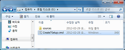 2. d:\sources , d:\Create7Setup.cmd -> 파일과 폴더를 D:로 복사했습니다.
