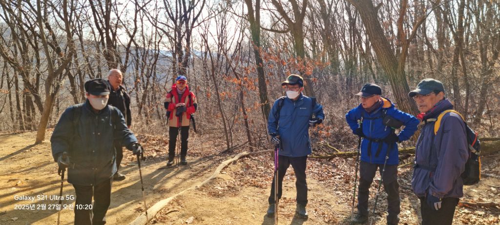 7명의 회원이 옛골에 모여 이수봉 능선을 향해 출발했다.