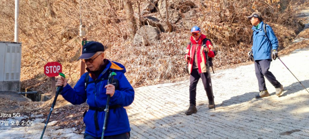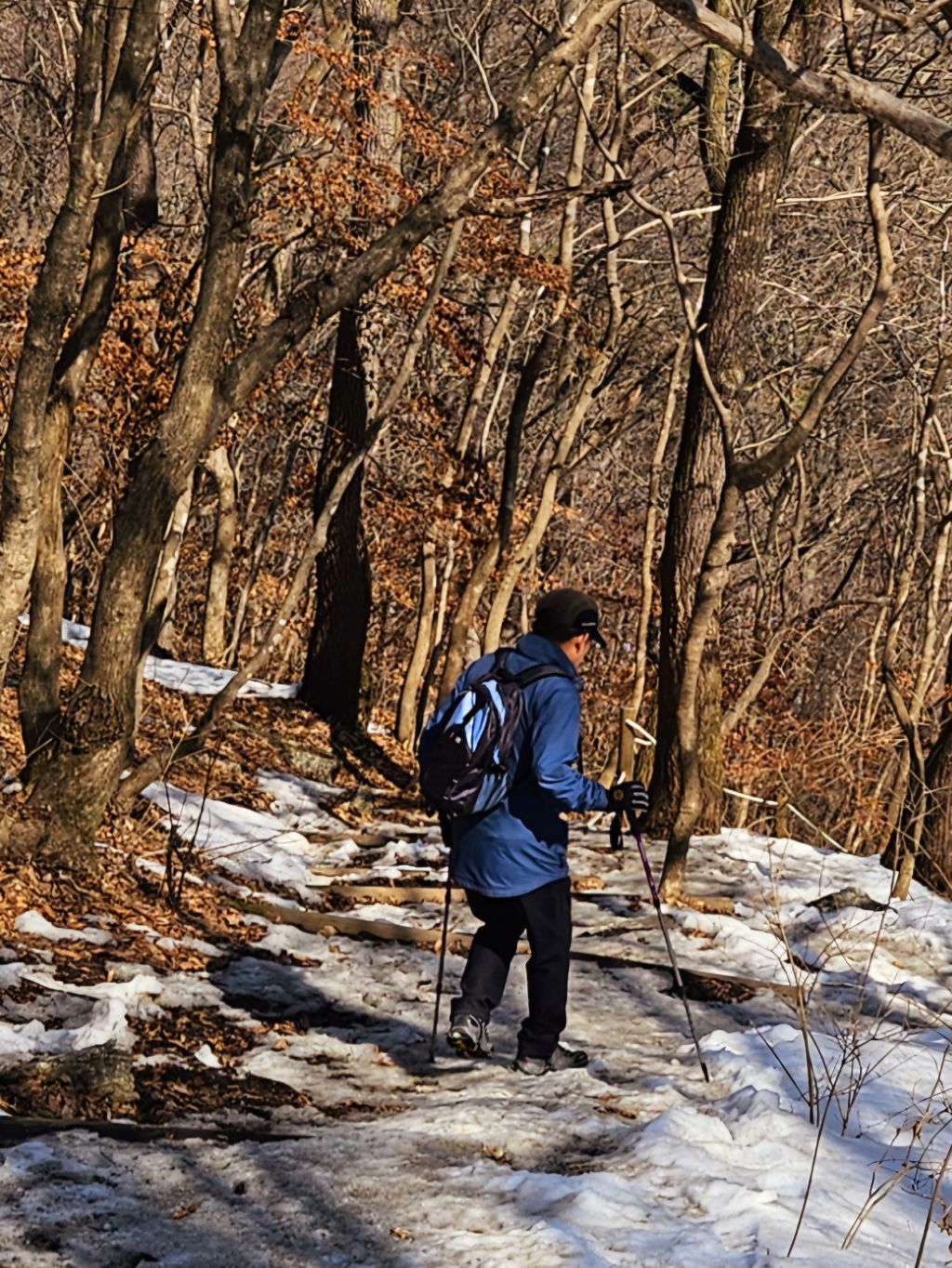 서서히 오르는데 능선 길은 대부분 녹아 있었지만 드문드문 미끄러운 얼음 길도 있다.