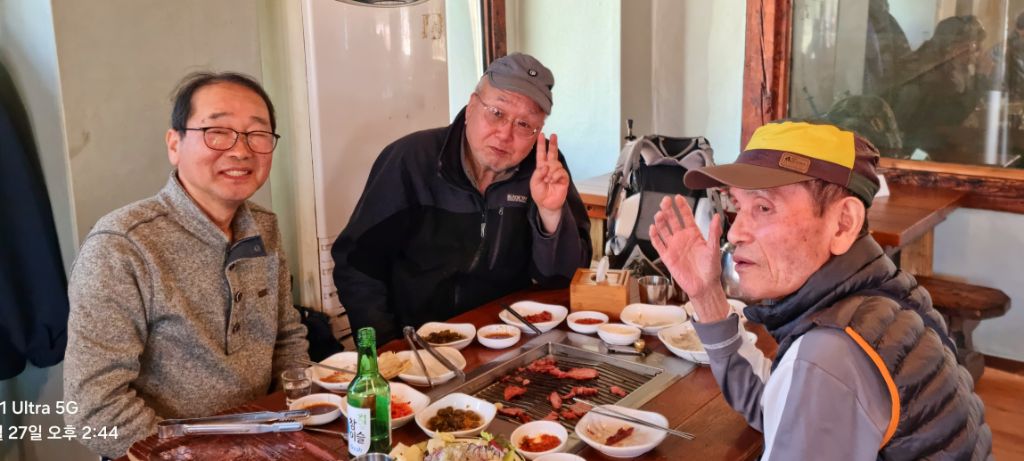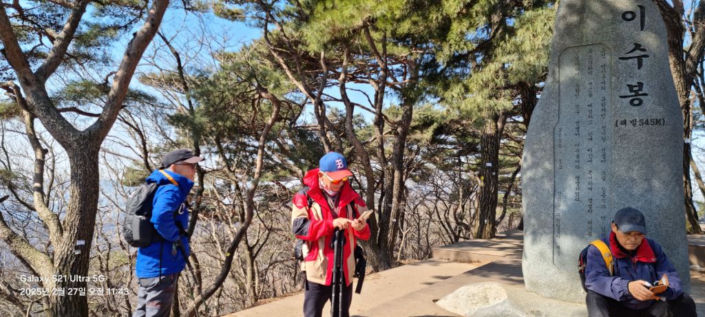 적당히 오르다 생강차와 커피타임을 가졌고, 이수봉을 가는데 한 분이 nature call me를 부르며 잠시 자리를 이탈한다.