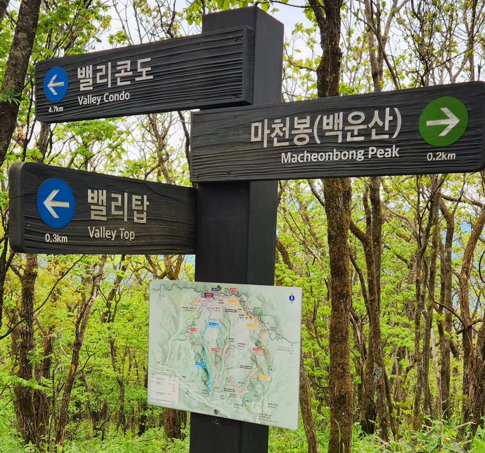 어제 걸었던 길로 걸어 마천봉까지 간다.