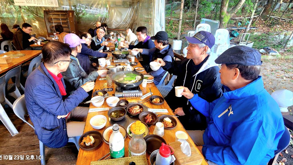 12:50 원터골 입구 소담채에서 뒤풀이에 오신 분들과 10명이 맛있는 한방 오리 백숙을 나누어 먹었다.
