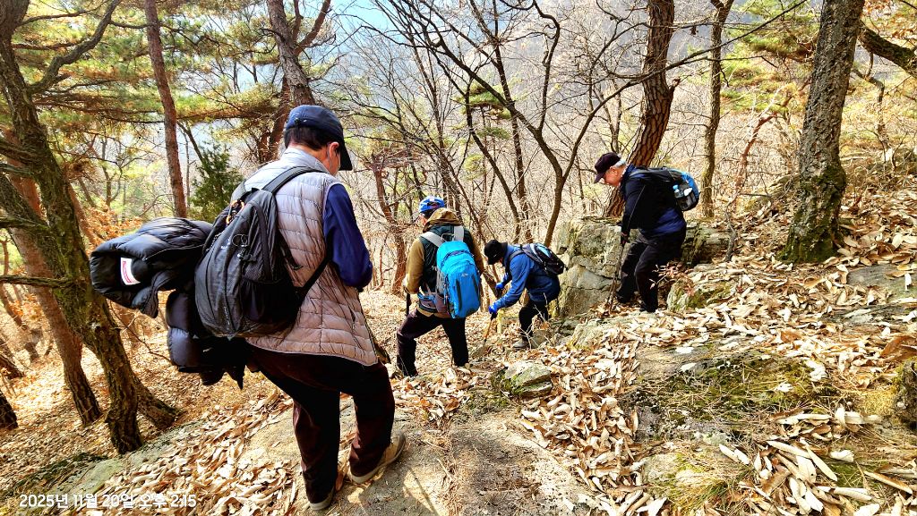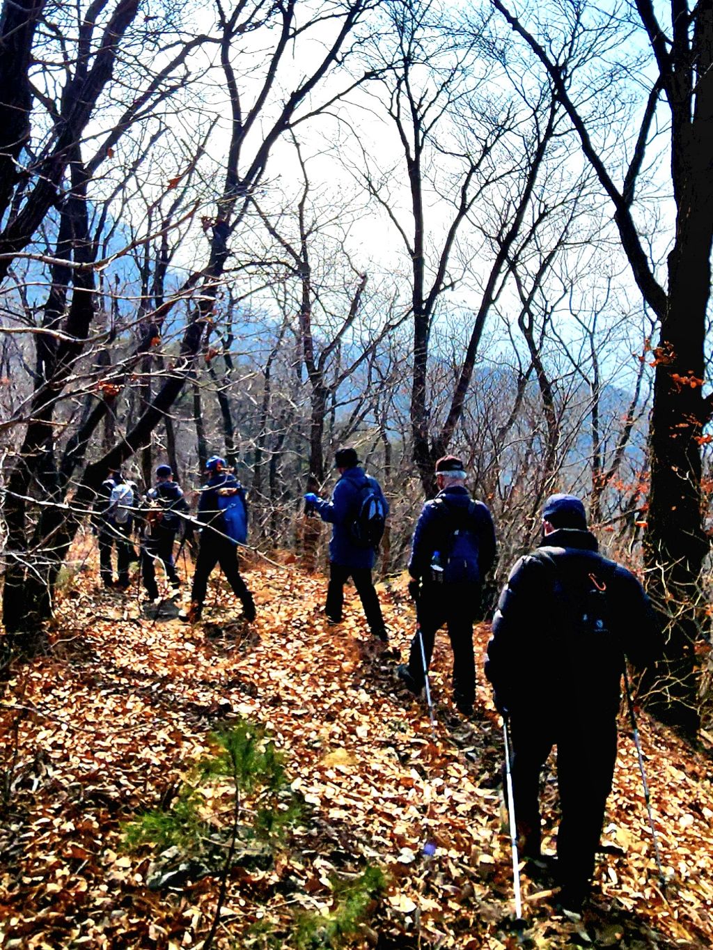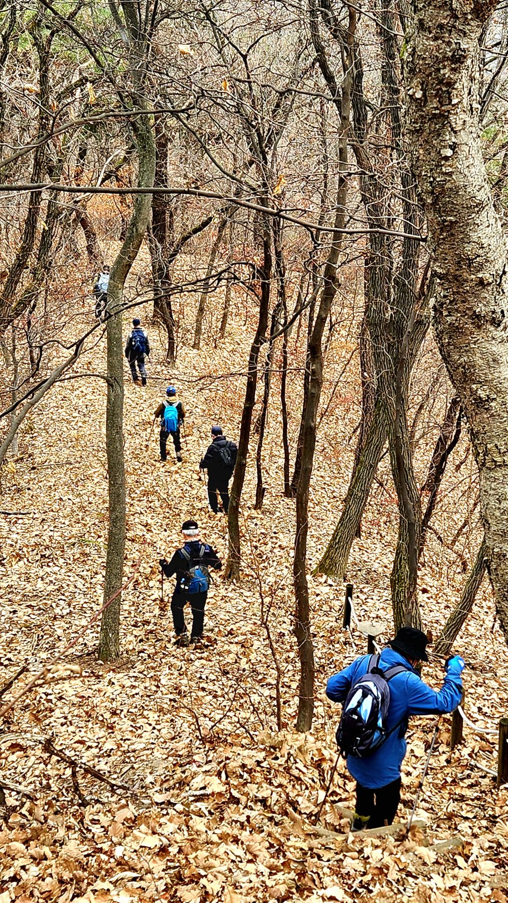 다시 출발한 하산길엔 앞뒤 간격이 멀어진다. 낙엽이 미끄러워 조심할 수밖에 없어서이다.