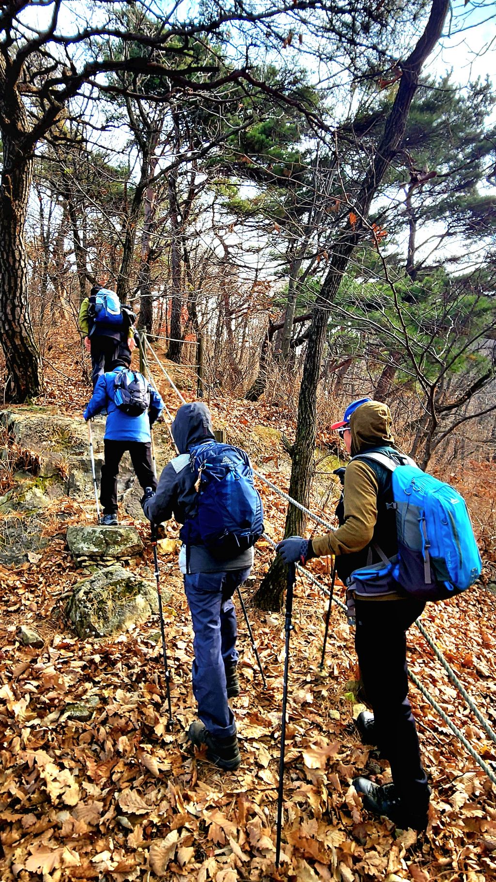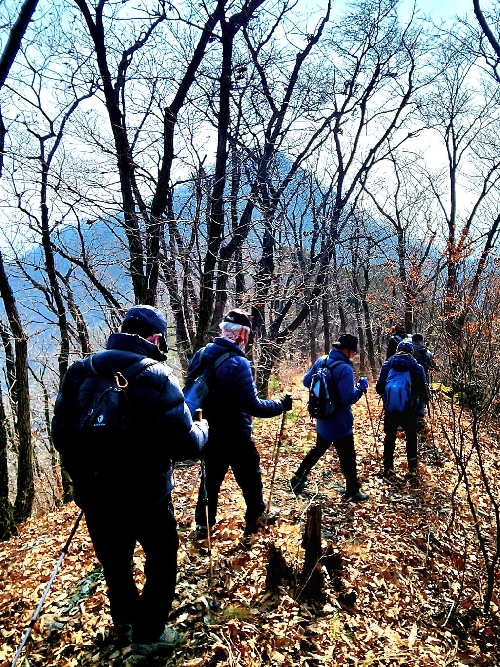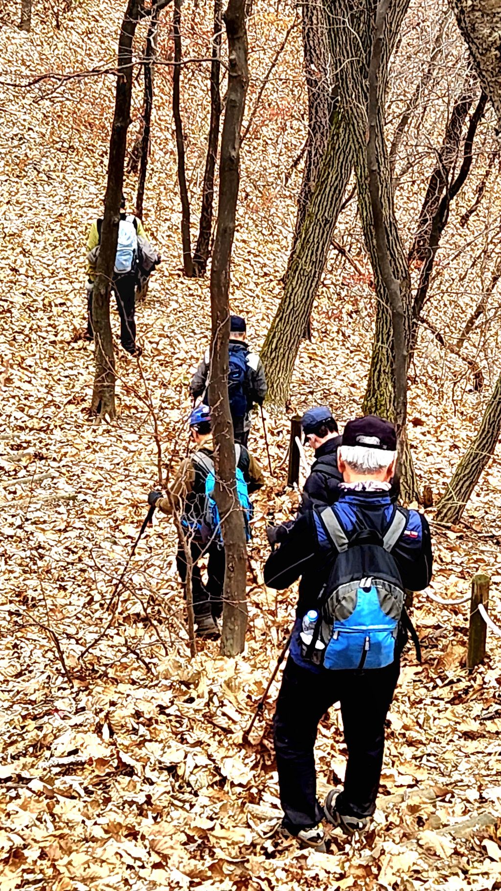 다시 출발한 하산길엔 앞뒤 간격이 멀어진다. 낙엽이 미끄러워 조심할 수밖에 없어서이다.