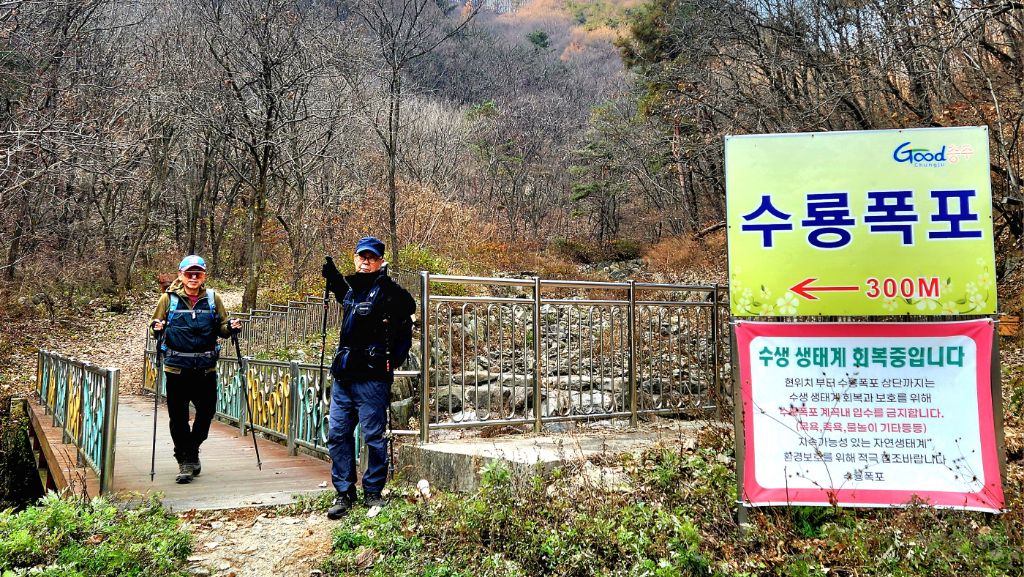 14:40 수룡폭포에 도착해 잠시 쉬고 세 명이 먼저 주차장으로 갔다.