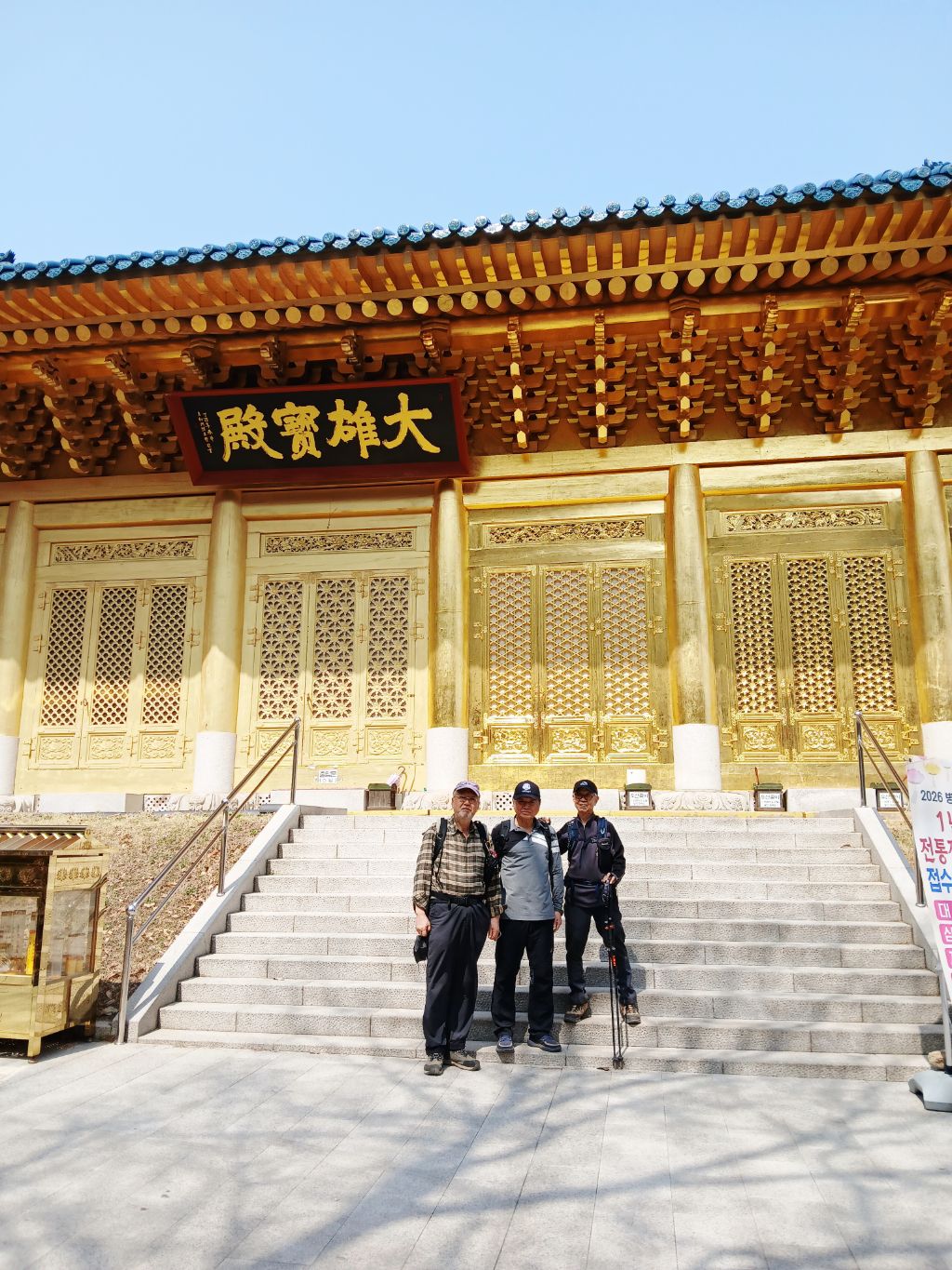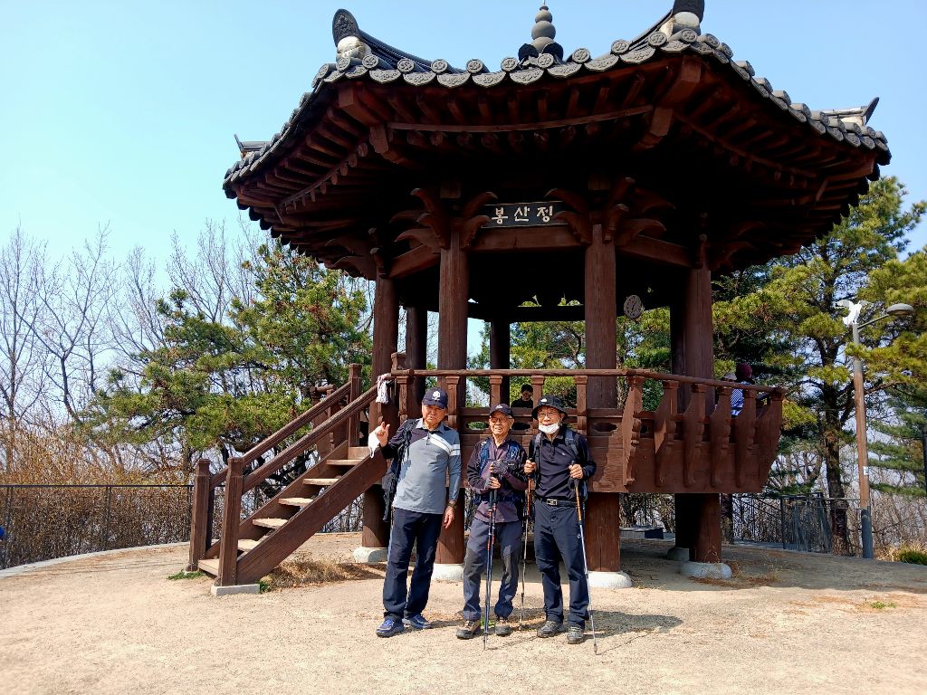 봉산을 향해가는데, 봉산 밑에는 세조의 장남이 세자로 책봉된 후 임금이 못되고 요절했기에 모셔논 "수국사"라는 절이 있는데 특이하게, 절의 벽면을 금칠했다고 합니다. 또한 다른 절과는 다르게 "대웅보전"이라는 글귀가 두면에 걸쳐서 적혀있습니다. 여기서 인증샷도 찍었습니다. 또한 수국사에서 봉산까지 무장애 데크가 2km걸처 만들어졌는데, 길 따라 걸어보니 좀 지루했습니다.