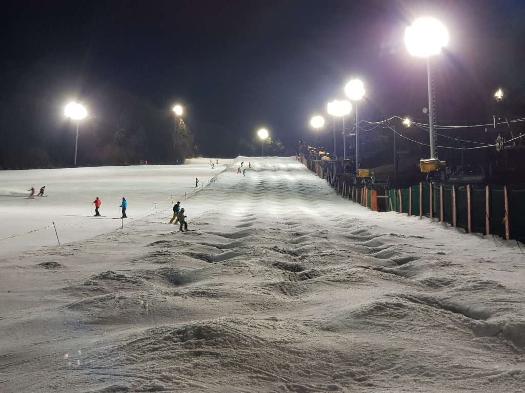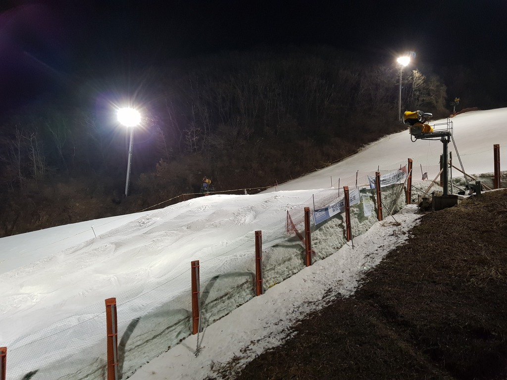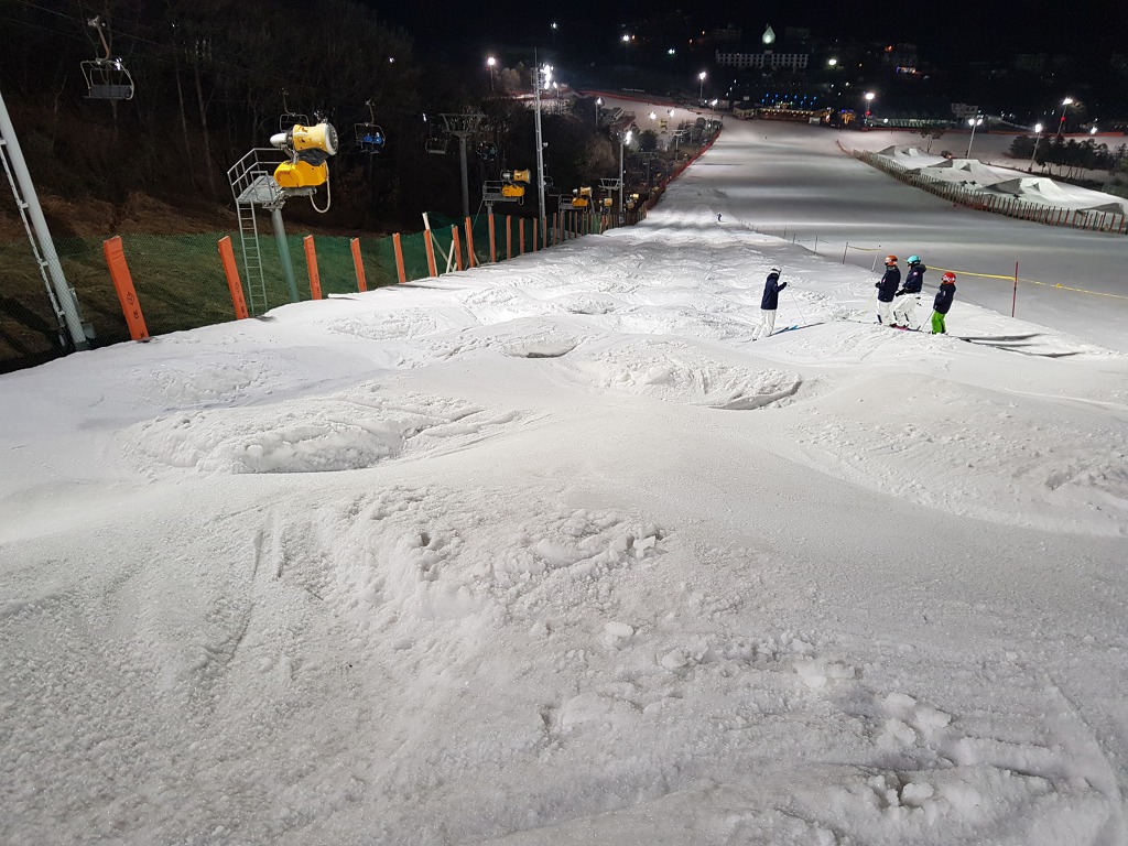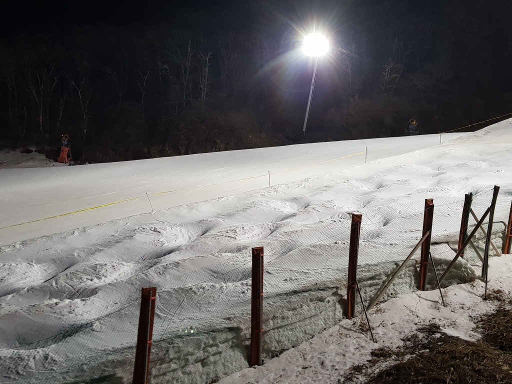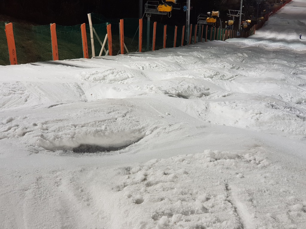 주간 시간에 일부 회원분들께서 모글코스 펜스 바깥편과 코스 하단에서 리프트 까지 영역에 초급 모글을 조성하셨습니다만,