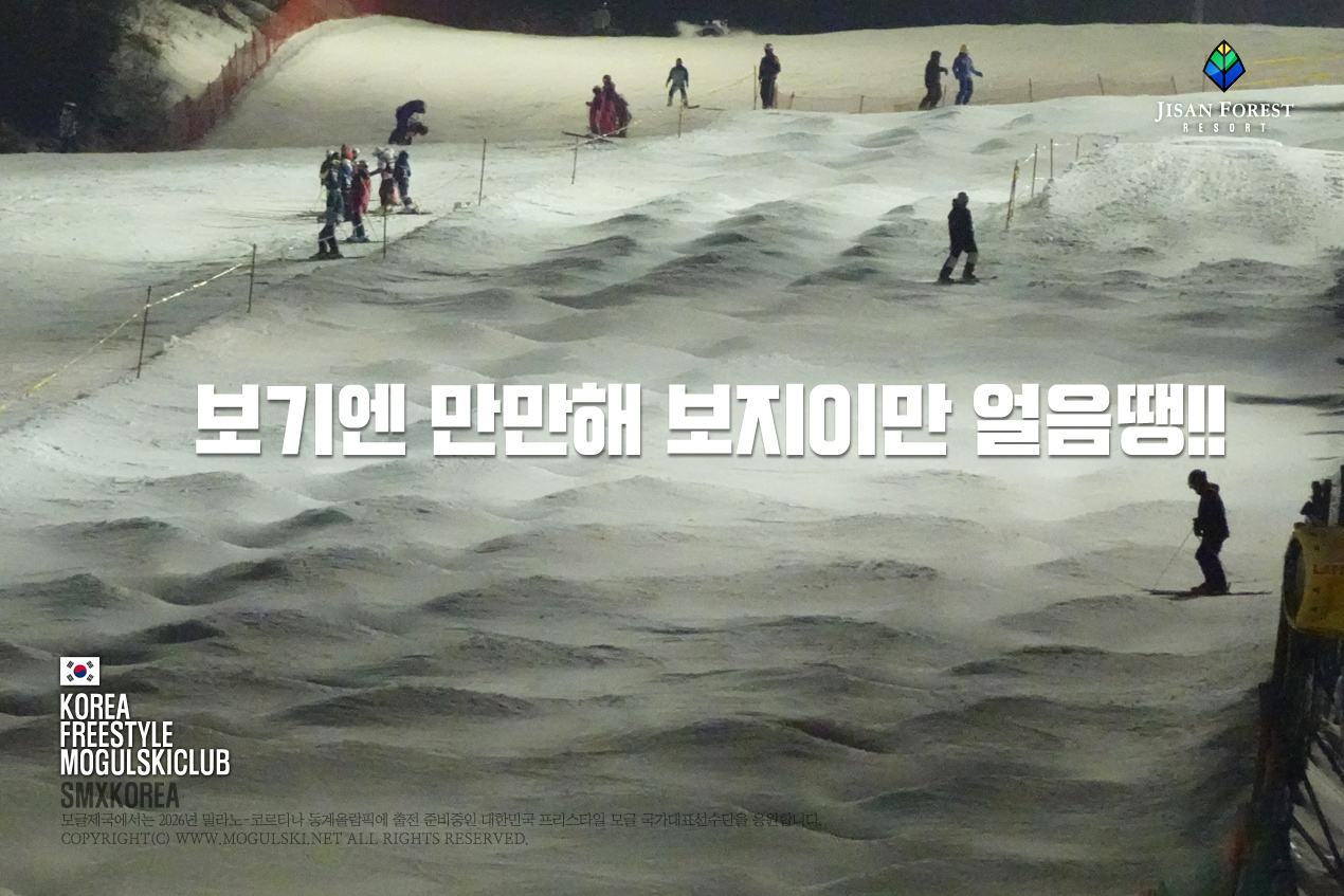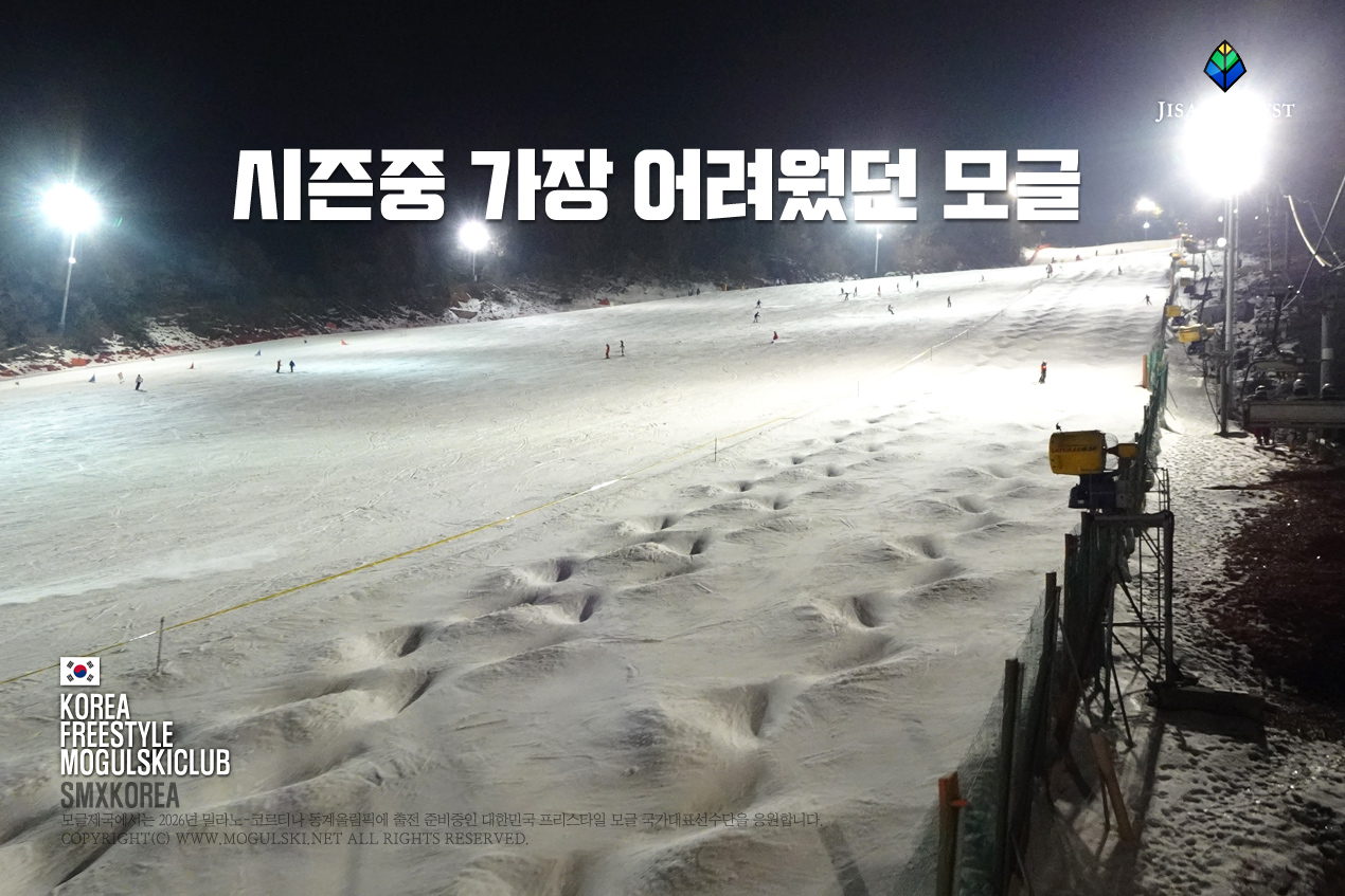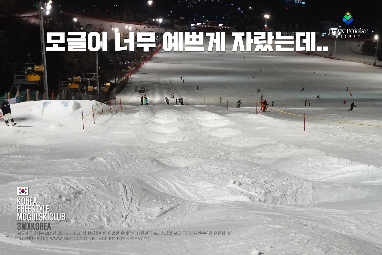 -. 모글은 참 좋은데.. 정말 아쉽습니다. 이모글은 내일 밤에 지운답니다. 지산리조트 제설팀 운영 방침이라 어쩔 수 없습니다.