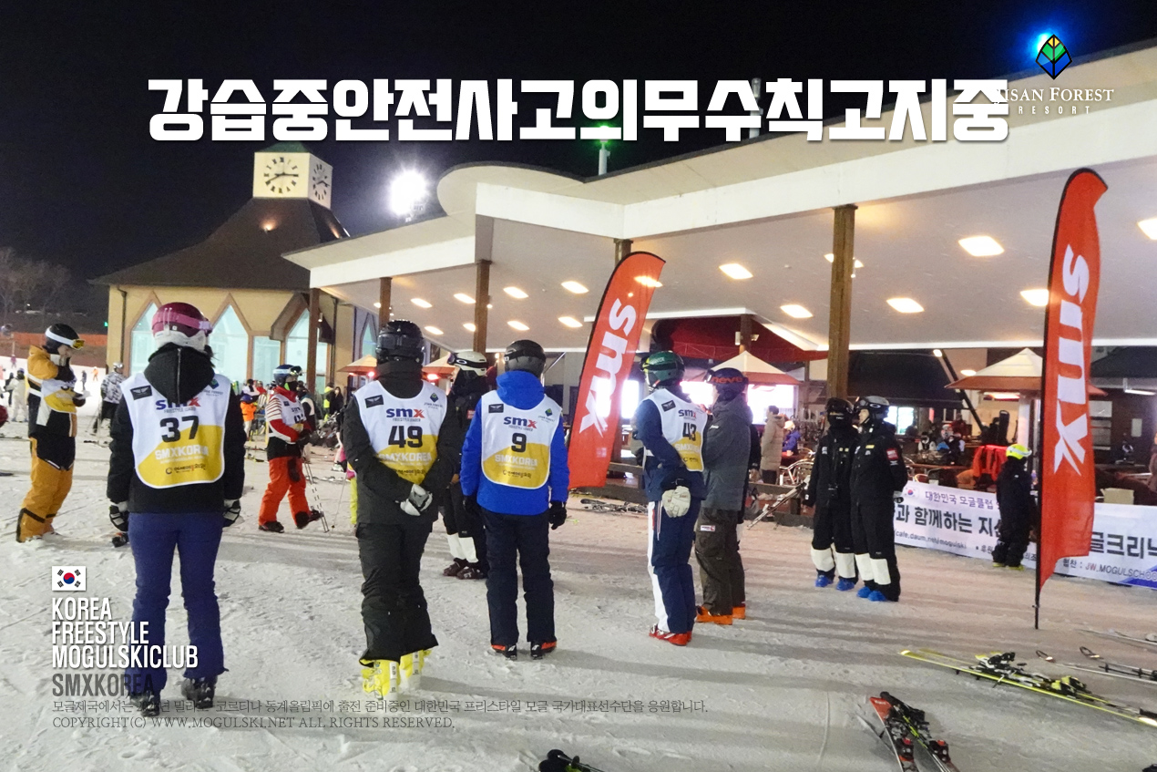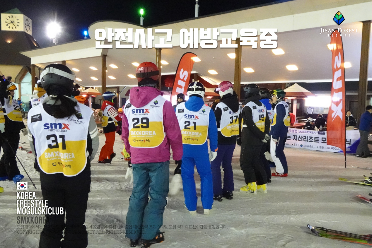 -. 모글 강습중 일어날 수 있는 각종 안전 사고에 대해 설명 중입니다.