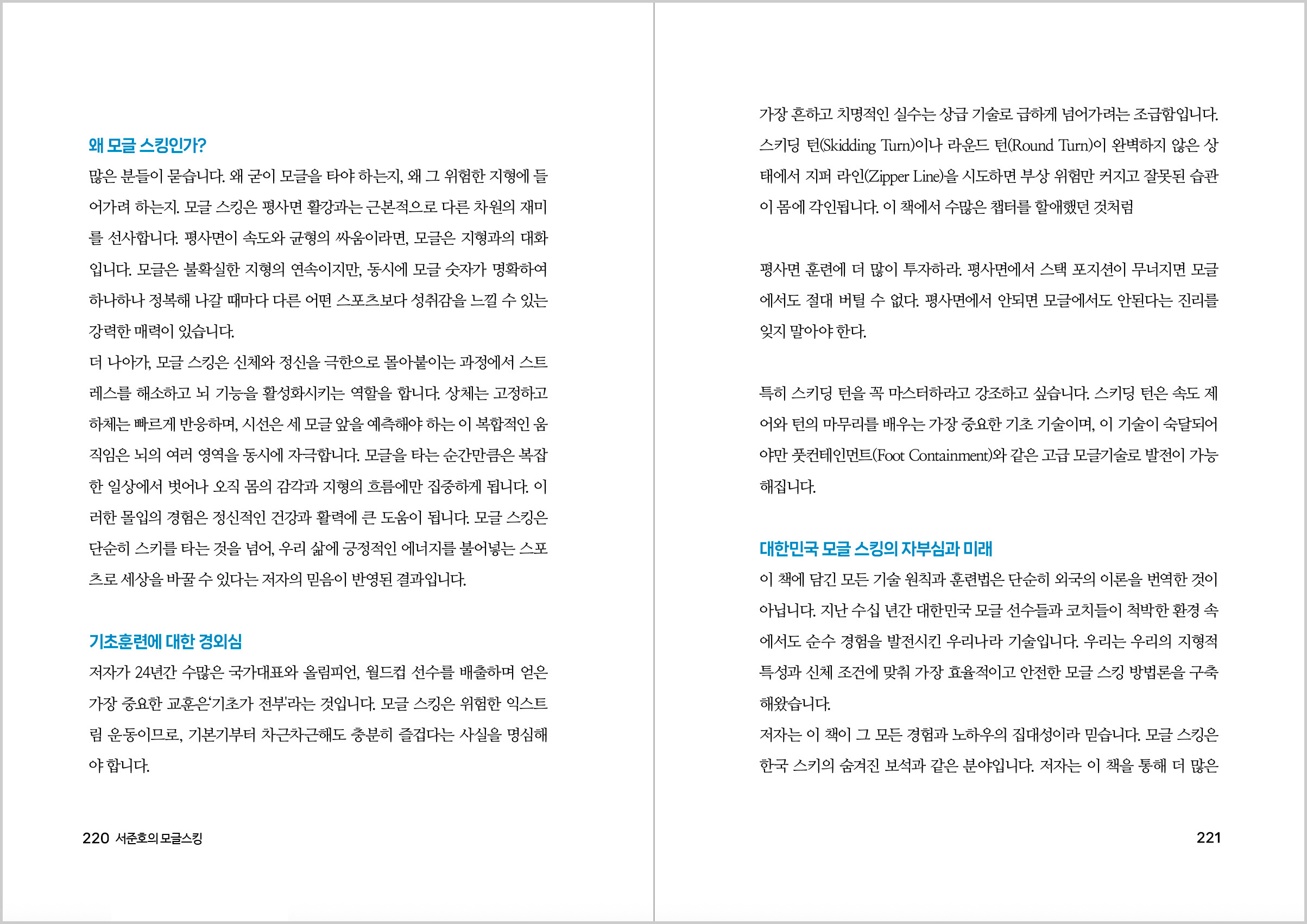 그래서 독자가 읽기 편하게 일반 스키 서적과 달리 서술형으로 최대한 지루하지 않게 썼습니다.