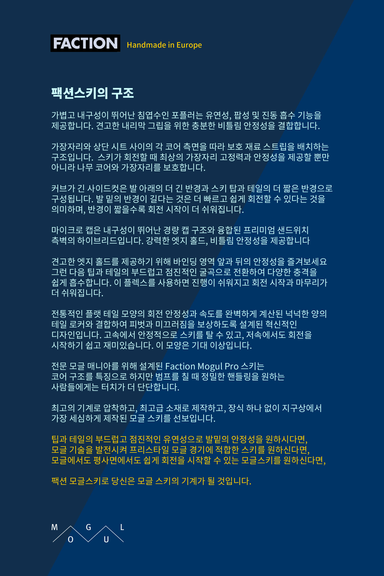 올해도 글로벌 프리스타일 스키 메이저 브랜드 FACTION LE MOGUL – PURE MOGULSKI 공동구매를 진행합니다.