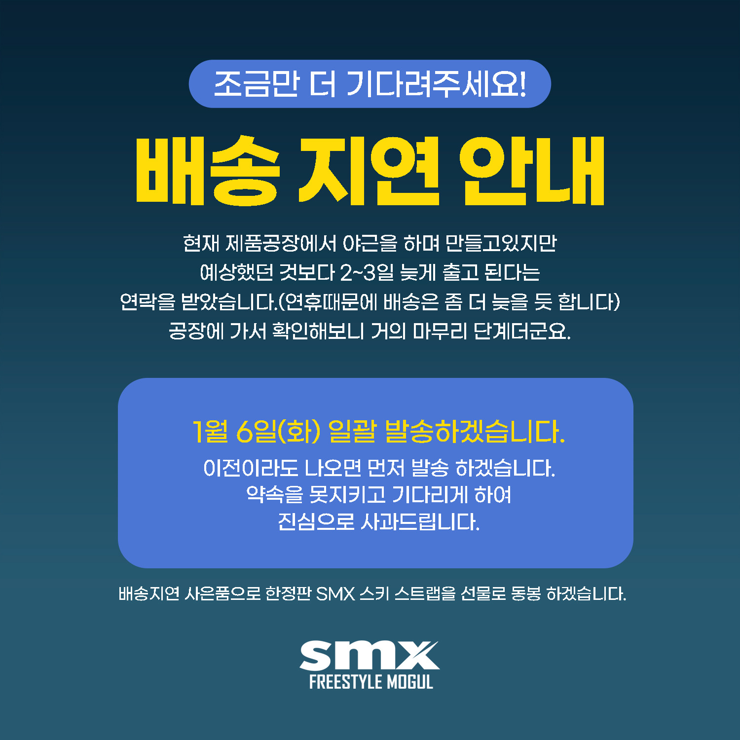 배송지연의 미안함으로 한정판 SMX 스키 스트랩을 사은품으로 드리겠습니다.