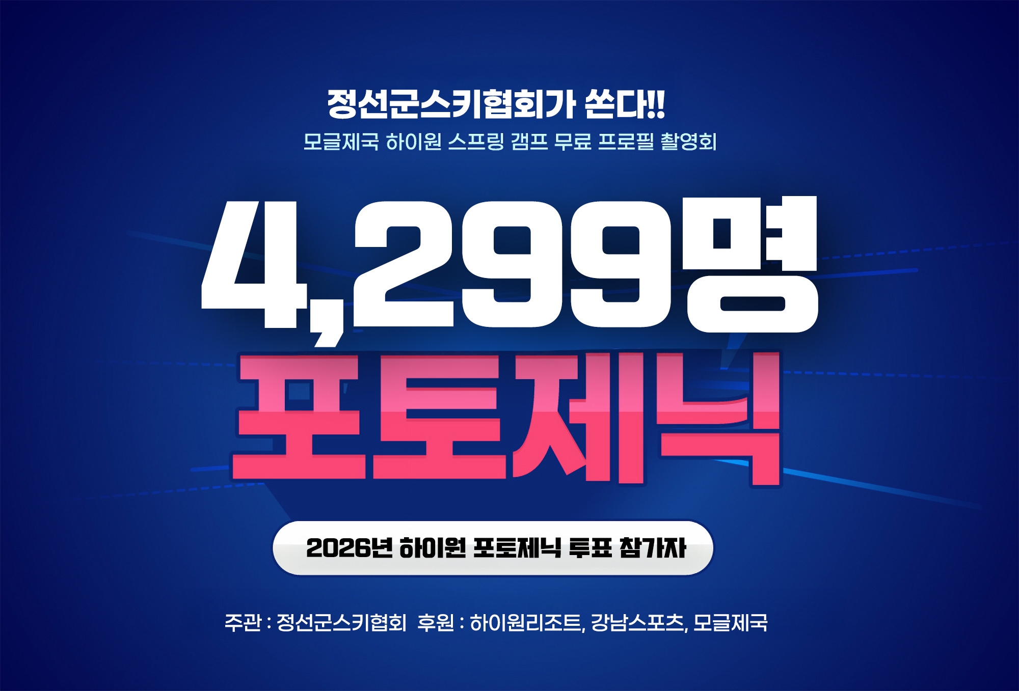 모글스키의 멋과 즐거움을 알리기 위한 모글포토제닉 대회는 총 4,299명의 투표자가 참여하셨습니다.