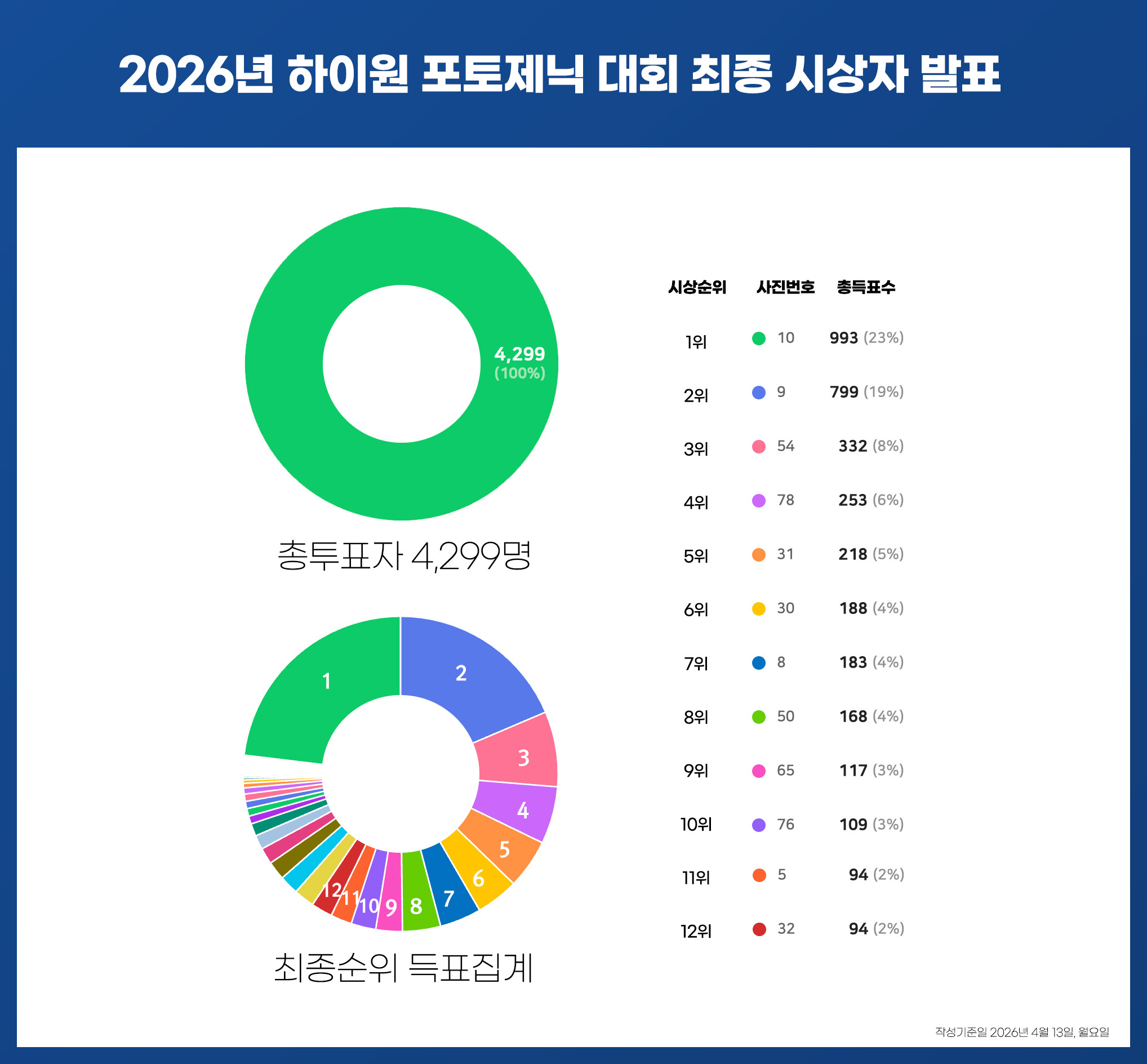 네이버 폼으로 10일간 가장 많은 표를 획득하신 분 순으로 1위에서 12위까지 투표 결과를 발표합니다.