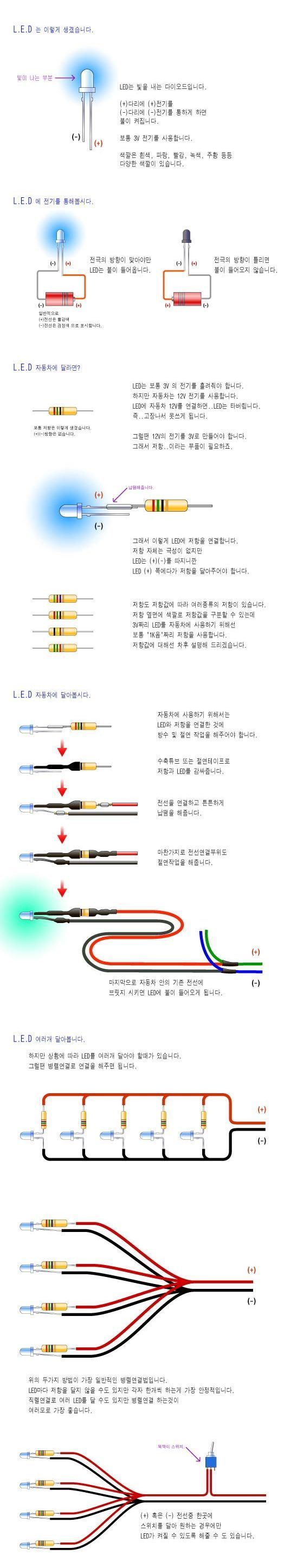 ** LED는 극성이 있으므로 반드시 전원극성과 맞춰주시고 직렬로 연결할때도 LED끼리