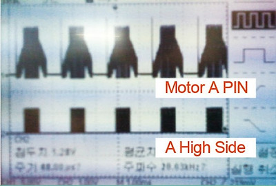 | 그림3-6. 모터의 A terminal과 브릿지 회로의 A high side input |