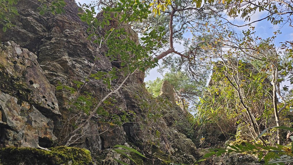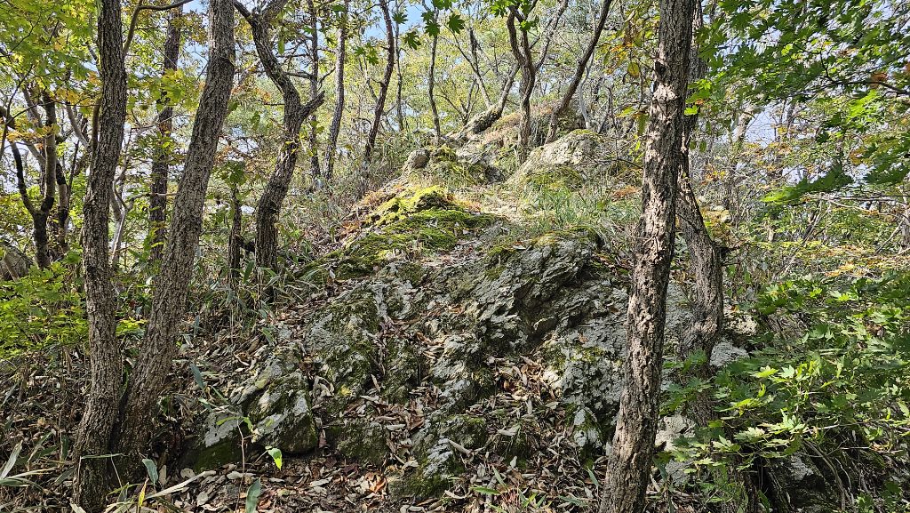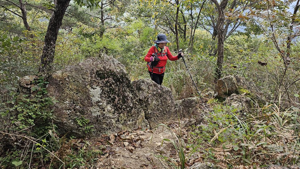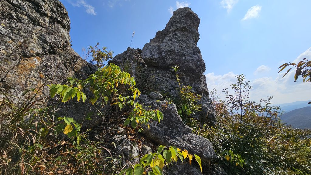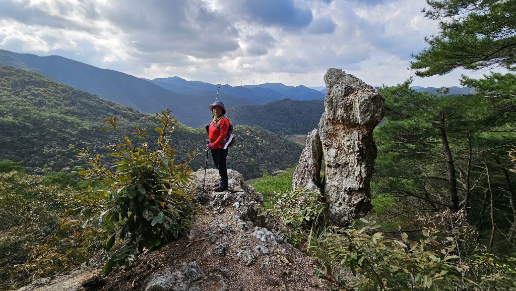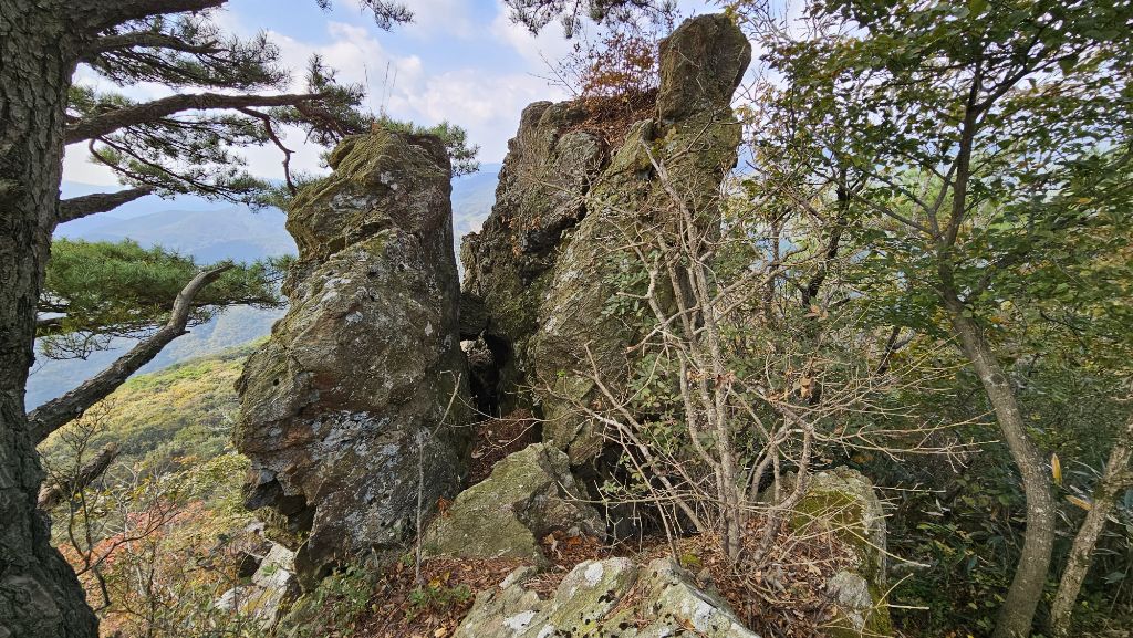 우뚝 솟은 바위인데 나무에 가려 조망이 시원찮아서 옥녀바위 조맟처로 내려가서 좌측에 변강쇠바위가 잘