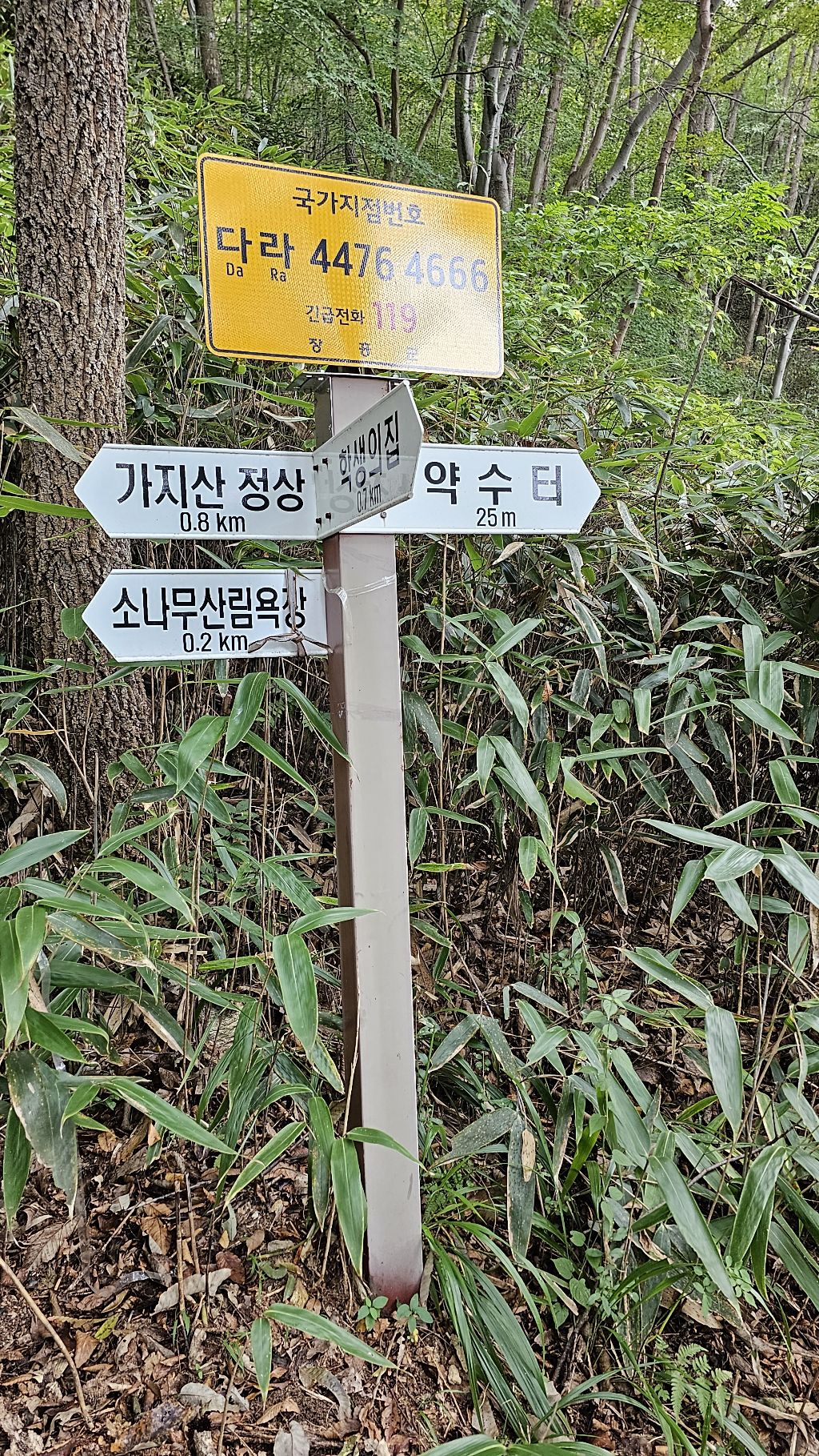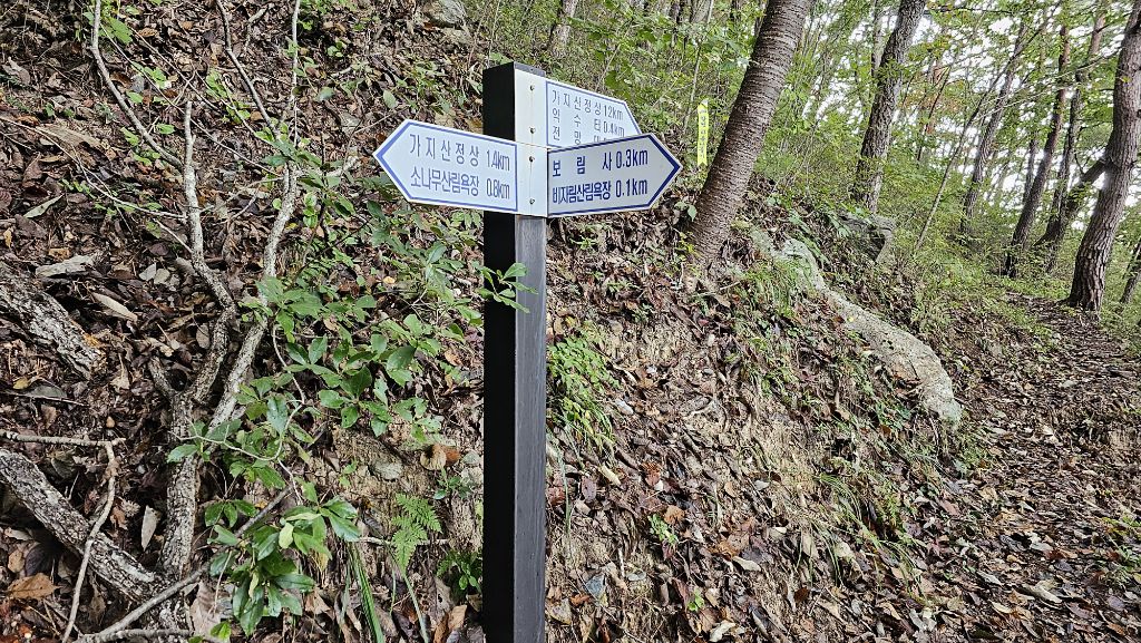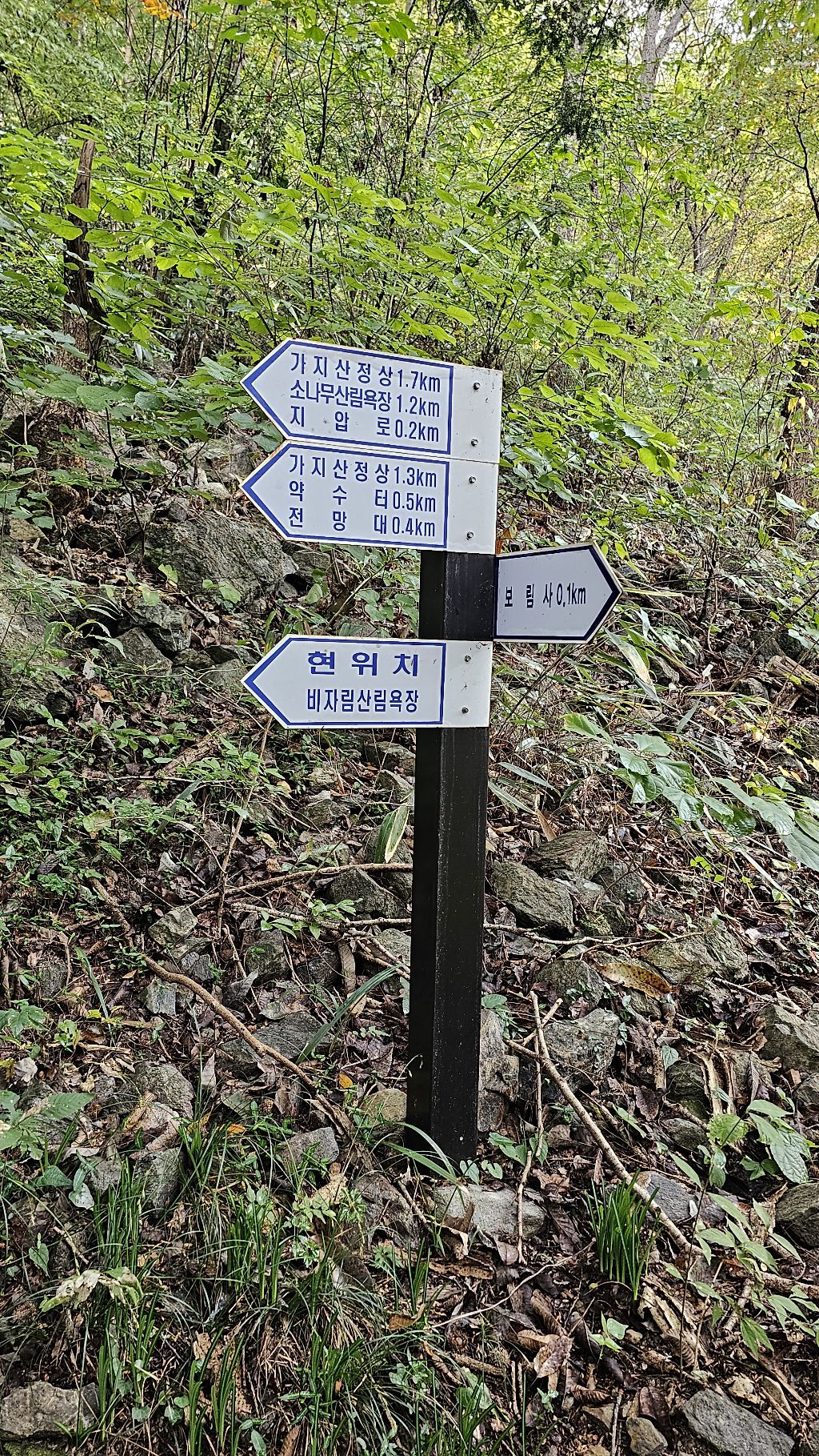 좌틀-가지산 정상(510M)-좌틀-학생의집.비자림산림욕장 갈림길-우틀-약수터-도로-좌틀-학생의집-