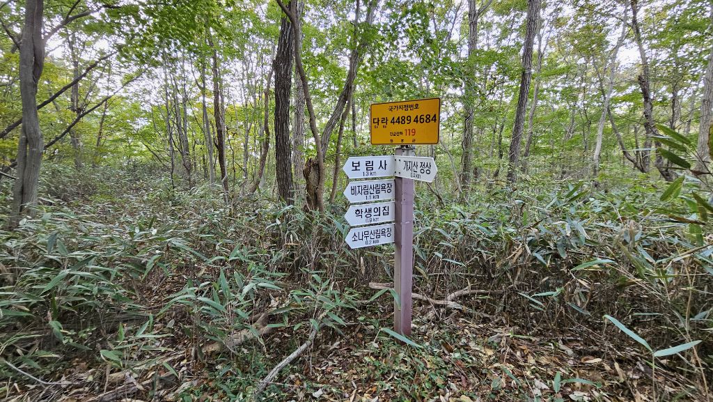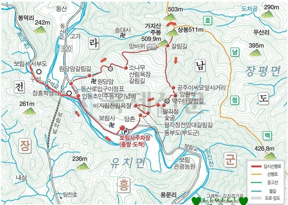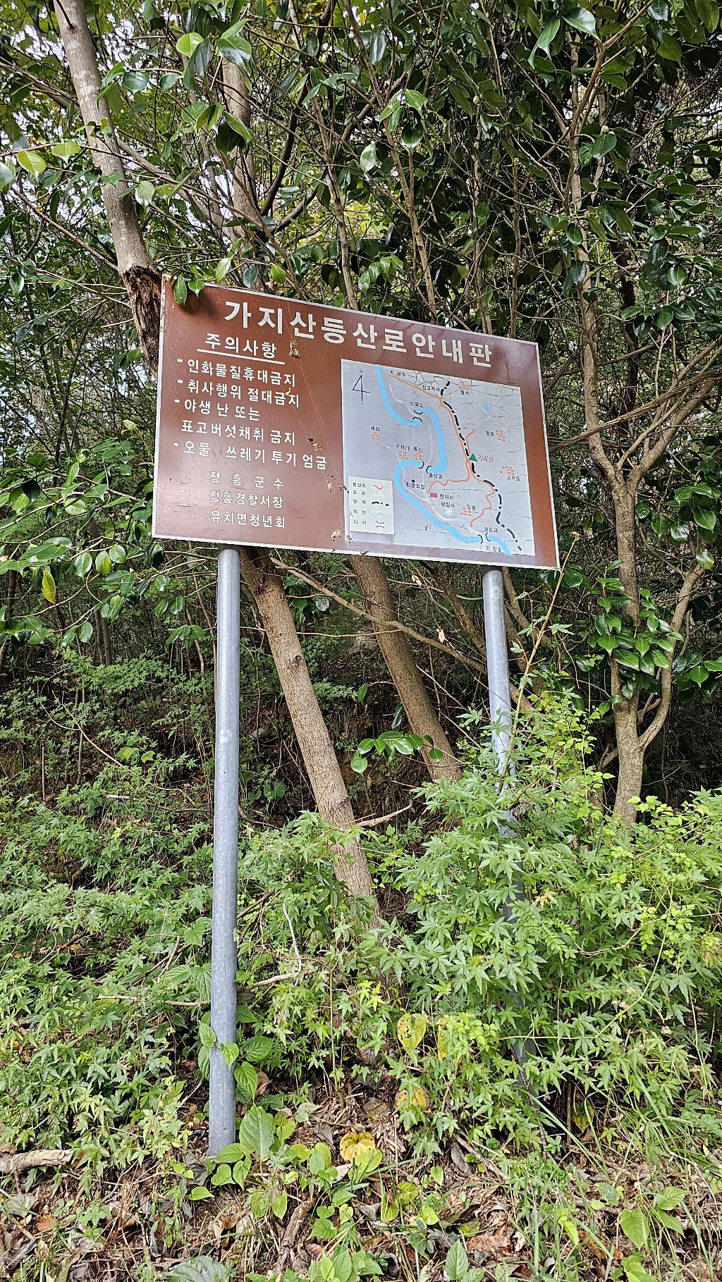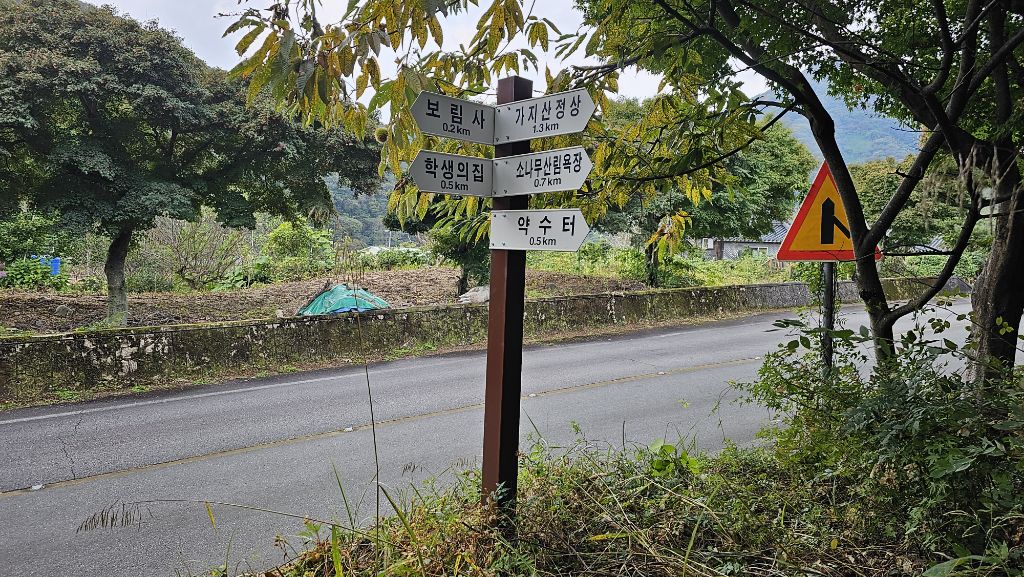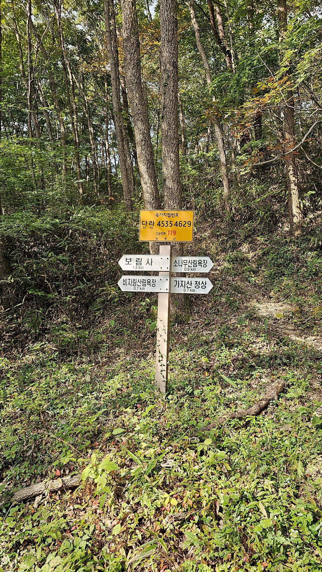 좌틀-가지산 정상(510M)-좌틀-학생의집.비자림산림욕장 갈림길-우틀-약수터-도로-좌틀-학생의집-
