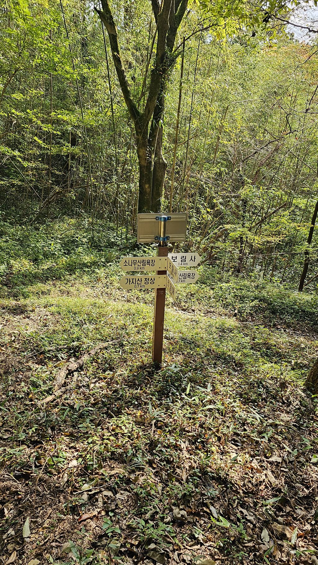 ○가지산: 보림사-녹차밭-비자림산림욕장-우틀-숯터-가지정 전망대-좌틀-약수터-망원석-삼계봉 갈림길-