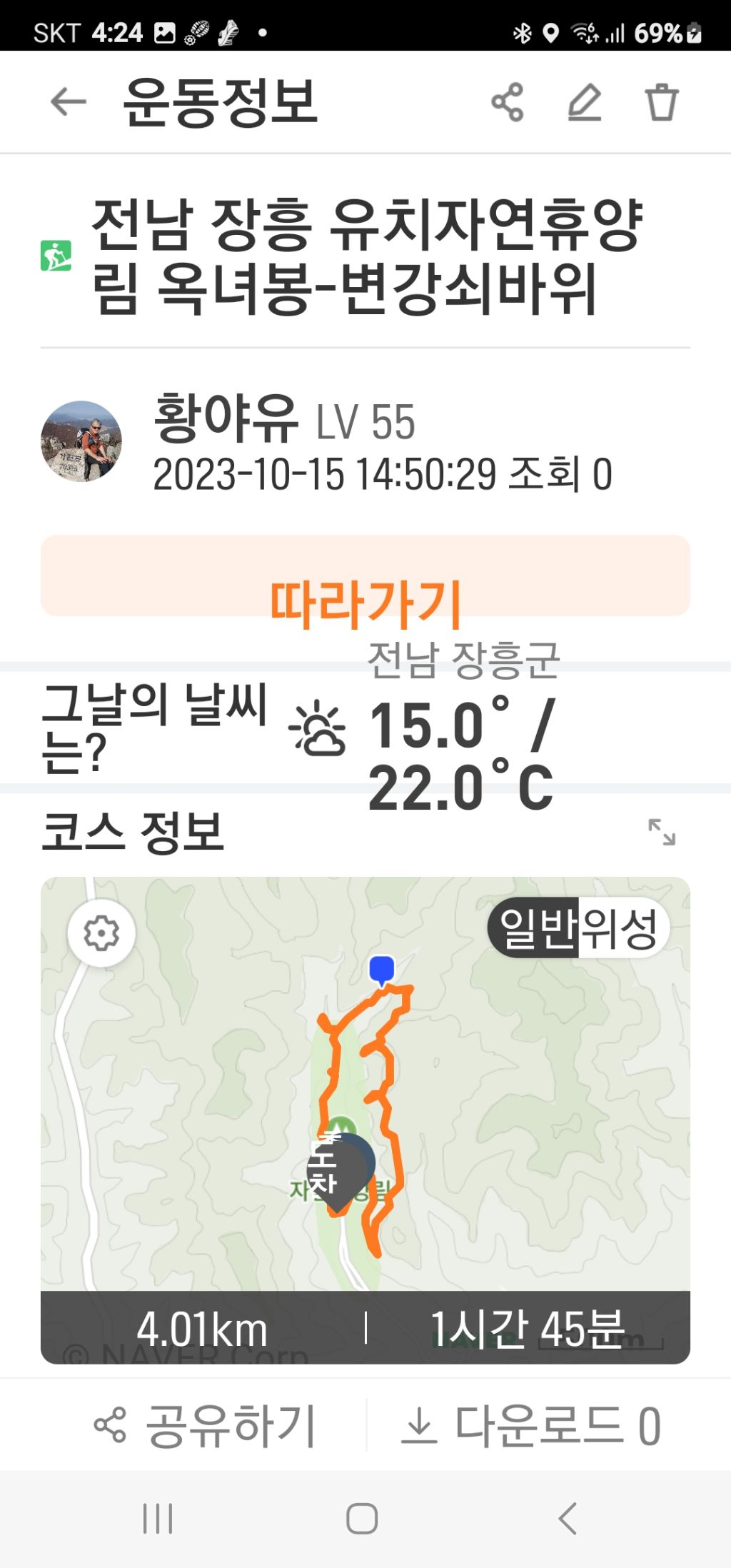 *2일차: 고성군 백운산(486m)-무량산(581.4)-학남산(651m)/나홀로