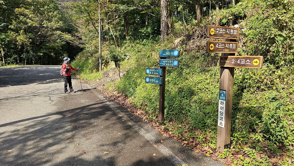 2.4코스 임도 갈림길-우틀-라이딩 2.4코스 임도-무지개폭포집 이정목-좌틀-변강쇠바위.옥녀바위 갈