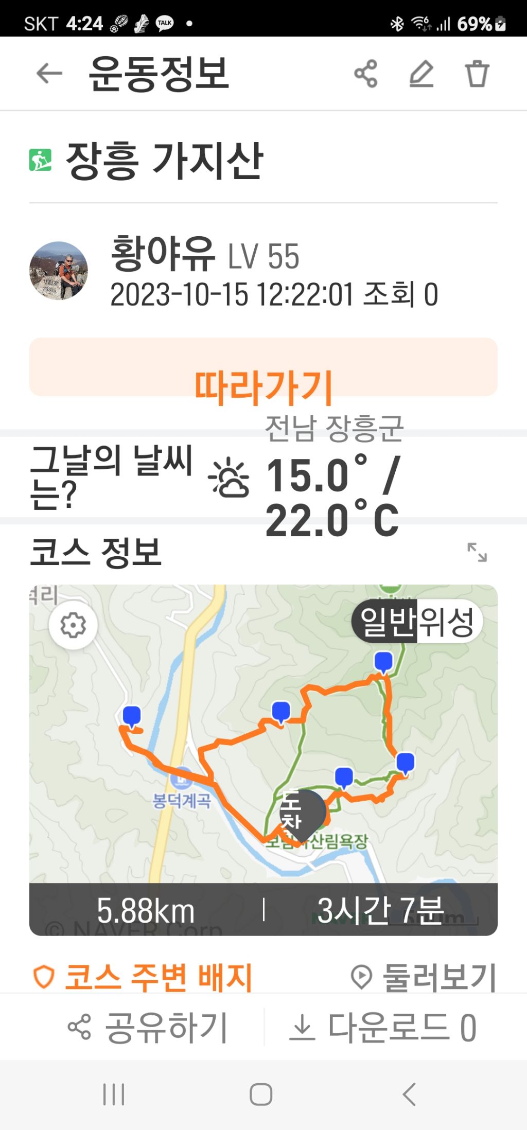 *3일차: 경기 용인시 문수봉(403.2m)-바래기산(368.2m)-재주봉(m)-굴암산(345.8m), 10.1km/나홀로