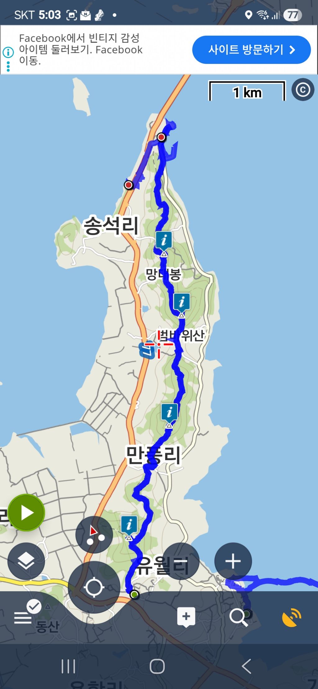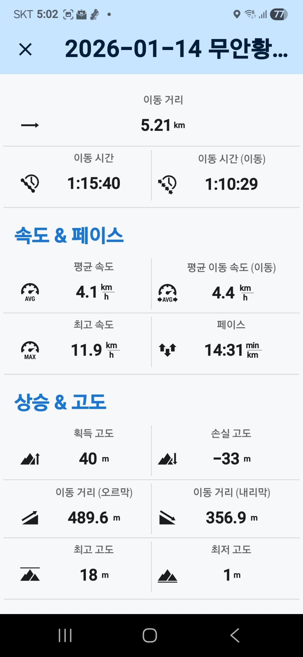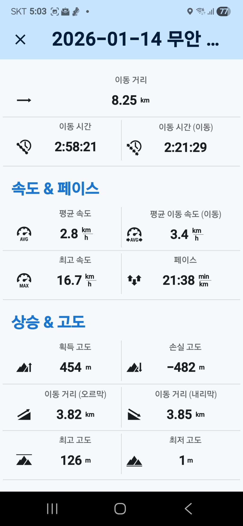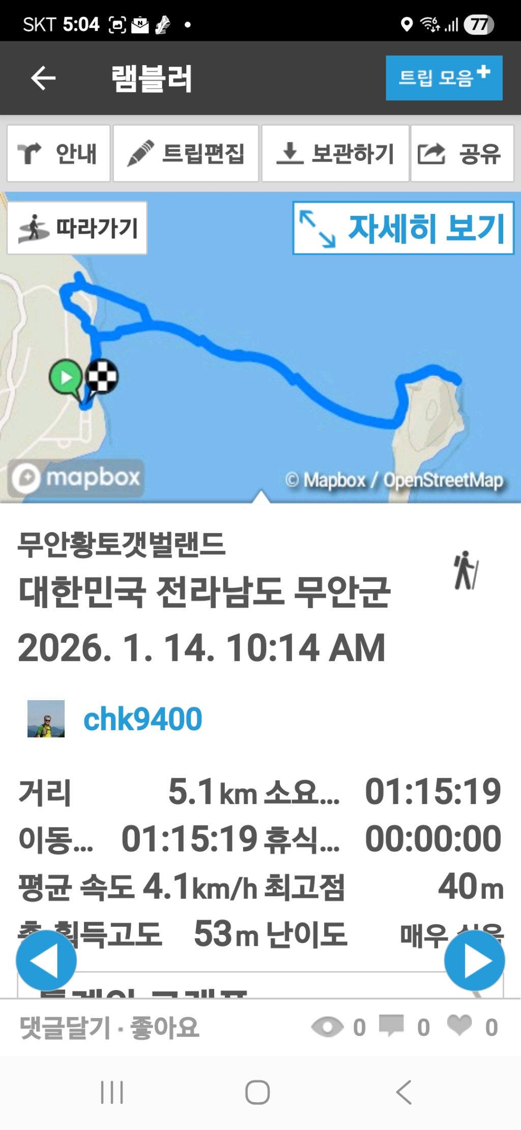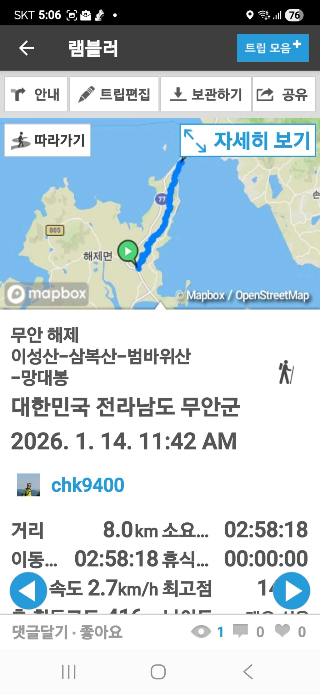 따라서 무안.해제 갈림길 삼거리에서 내려 고맙다는 인사를 건넨 뒤, 0.9km를 걸어 원점회귀한 뒤 내차를 회수할 수