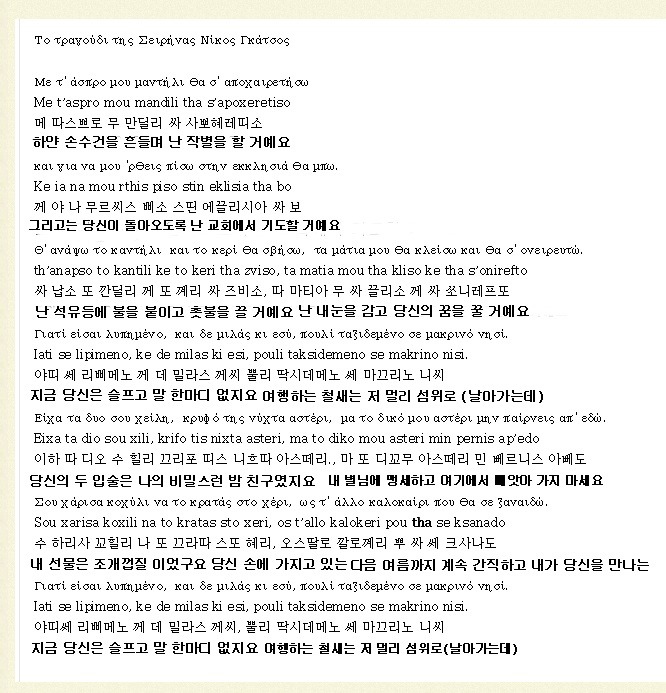 Pouli taxidemeno se makrino nisi 여행하는 철새는 저 멀리 섬위로(날아가는데)