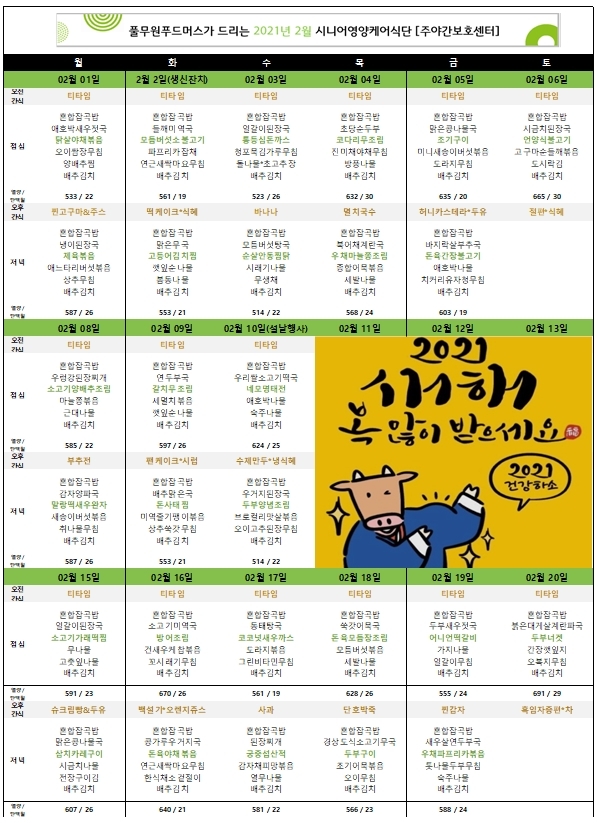[식단자료]2021년 02월 식사 및 간식 작성자목민데이케어센터|작성시간21.01.29|조회수27 목록 댓글 0 글자크기 작게가 글자크기 크게가 다음검색 현재 게시글 추가 기능 열기 북마크 공유하기 신고 센터로 신고 댓글 댓글 0 댓글쓰기 답글쓰기 댓글 리스트