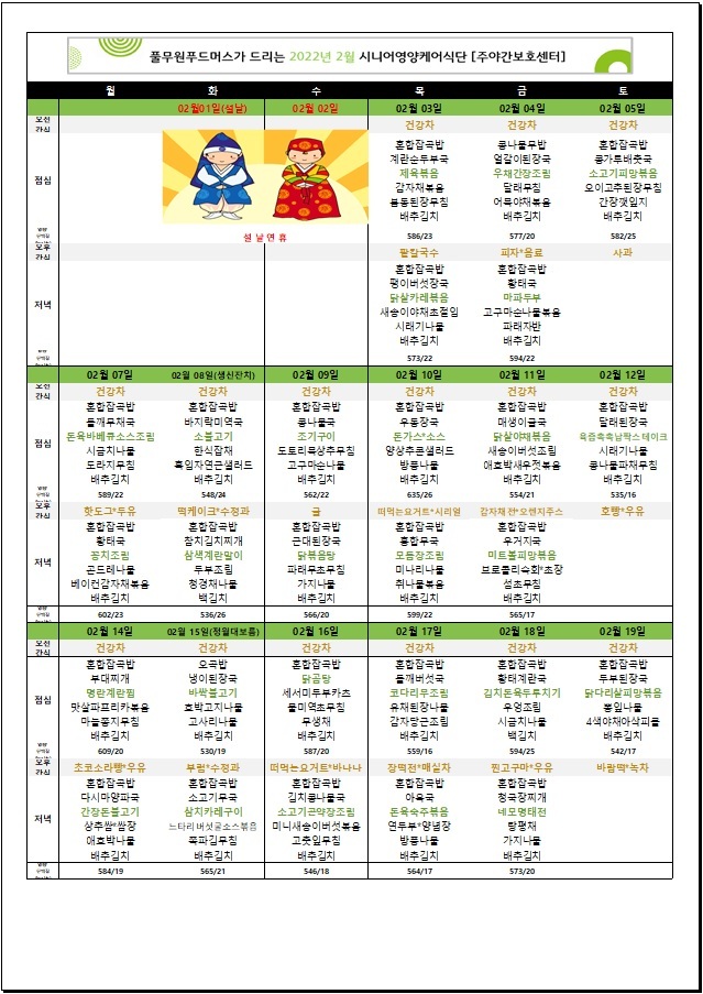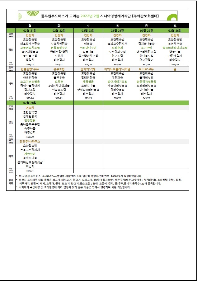 [식단자료]2022년 02월 식사 및 간식 작성자목민데이케어센터|작성시간22.02.12|조회수18 목록 댓글 0 글자크기 작게가 글자크기 크게가 다음검색 현재 게시글 추가 기능 열기 북마크 공유하기 신고 센터로 신고 댓글 댓글 0 댓글쓰기 답글쓰기 댓글 리스트