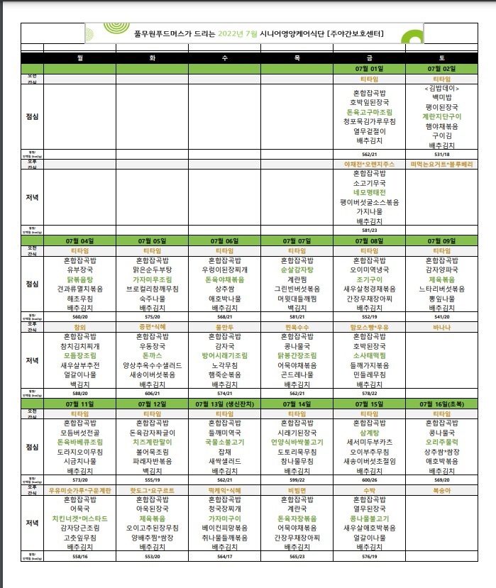 [식단자료]2022년 07월 식단 및 간식 작성자목민데이케어센터|작성시간22.06.30|조회수25 목록 댓글 0 글자크기 작게가 글자크기 크게가 다음검색 현재 게시글 추가 기능 열기 북마크 공유하기 신고 센터로 신고 댓글 댓글 0 댓글쓰기 답글쓰기 댓글 리스트