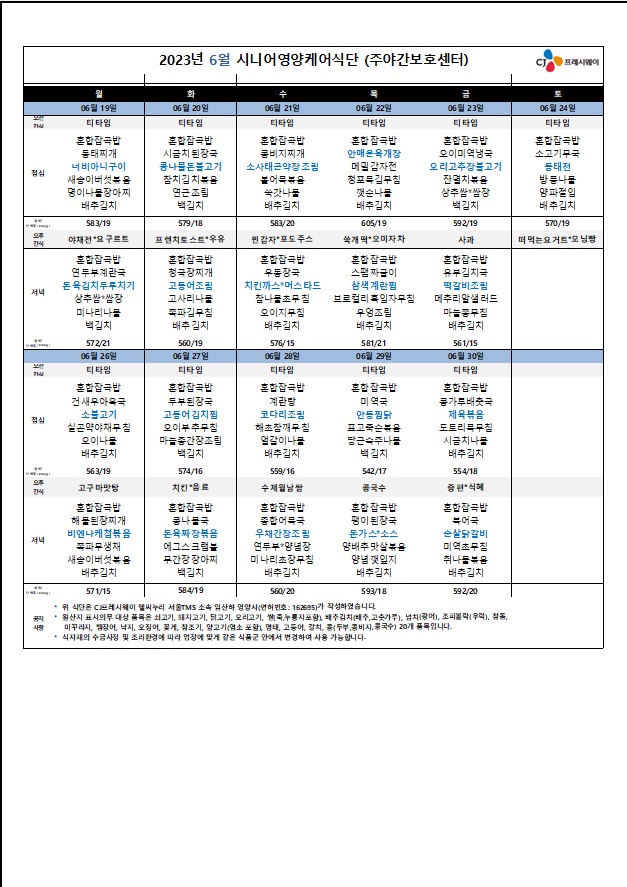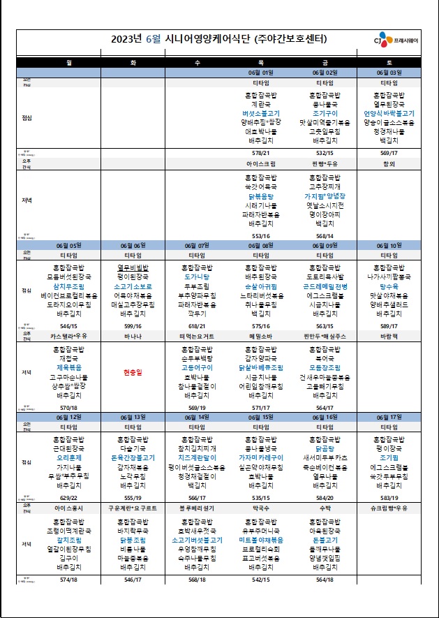 [식단자료]2023년 06월 식단 및 간식 작성자목민데이케어센터|작성시간23.05.31|조회수34 목록 댓글 0 글자크기 작게가 글자크기 크게가 다음검색 현재 게시글 추가 기능 열기 북마크 공유하기 신고 센터로 신고 댓글 댓글 0 댓글쓰기 답글쓰기 댓글 리스트