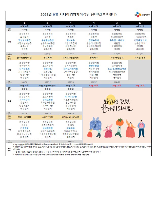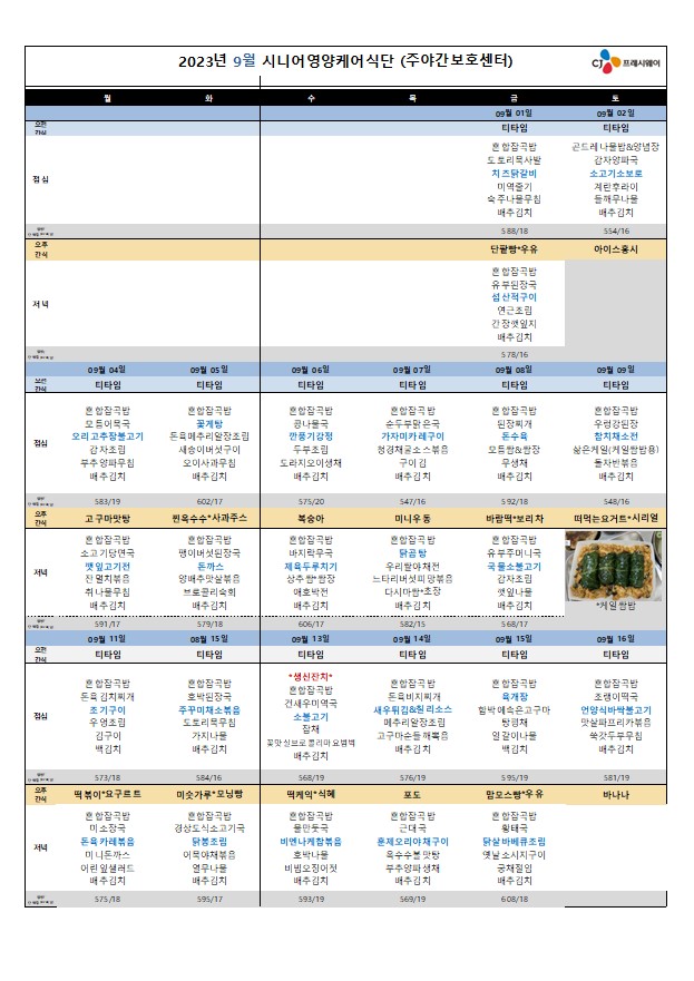 [식단자료]2023년 09월 식단 및 간식 작성자목민데이케어센터|작성시간23.09.01|조회수36 목록 댓글 0 글자크기 작게가 글자크기 크게가 다음검색 현재 게시글 추가 기능 열기 북마크 공유하기 신고 센터로 신고 댓글 댓글 0 댓글쓰기 답글쓰기 댓글 리스트