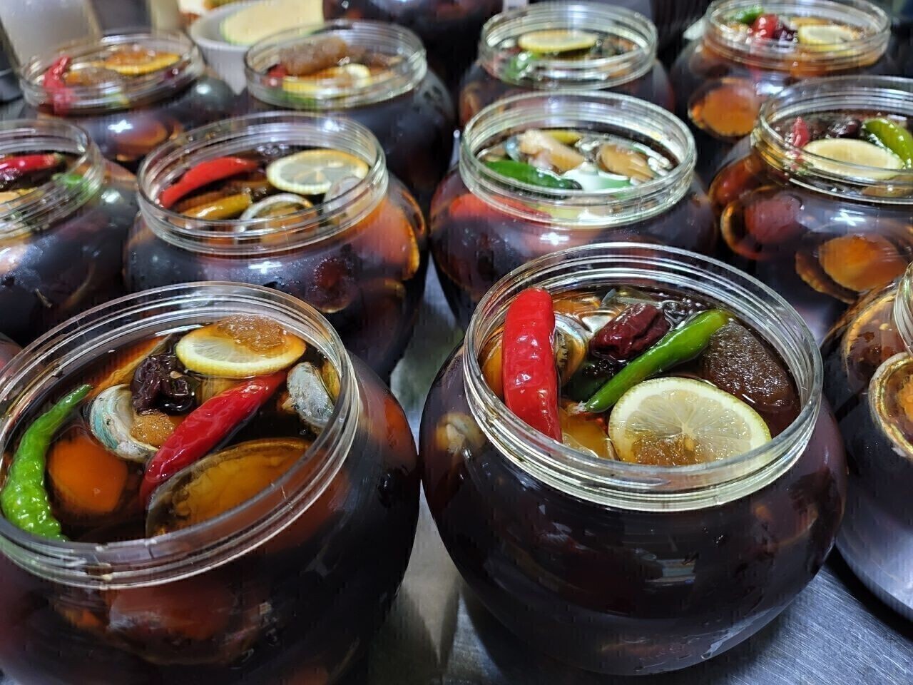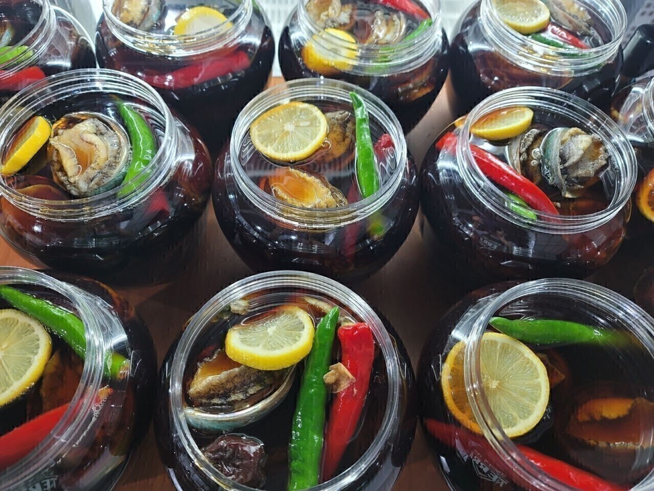 완도산 양식 활 전복으로 담은 전복장입니다.