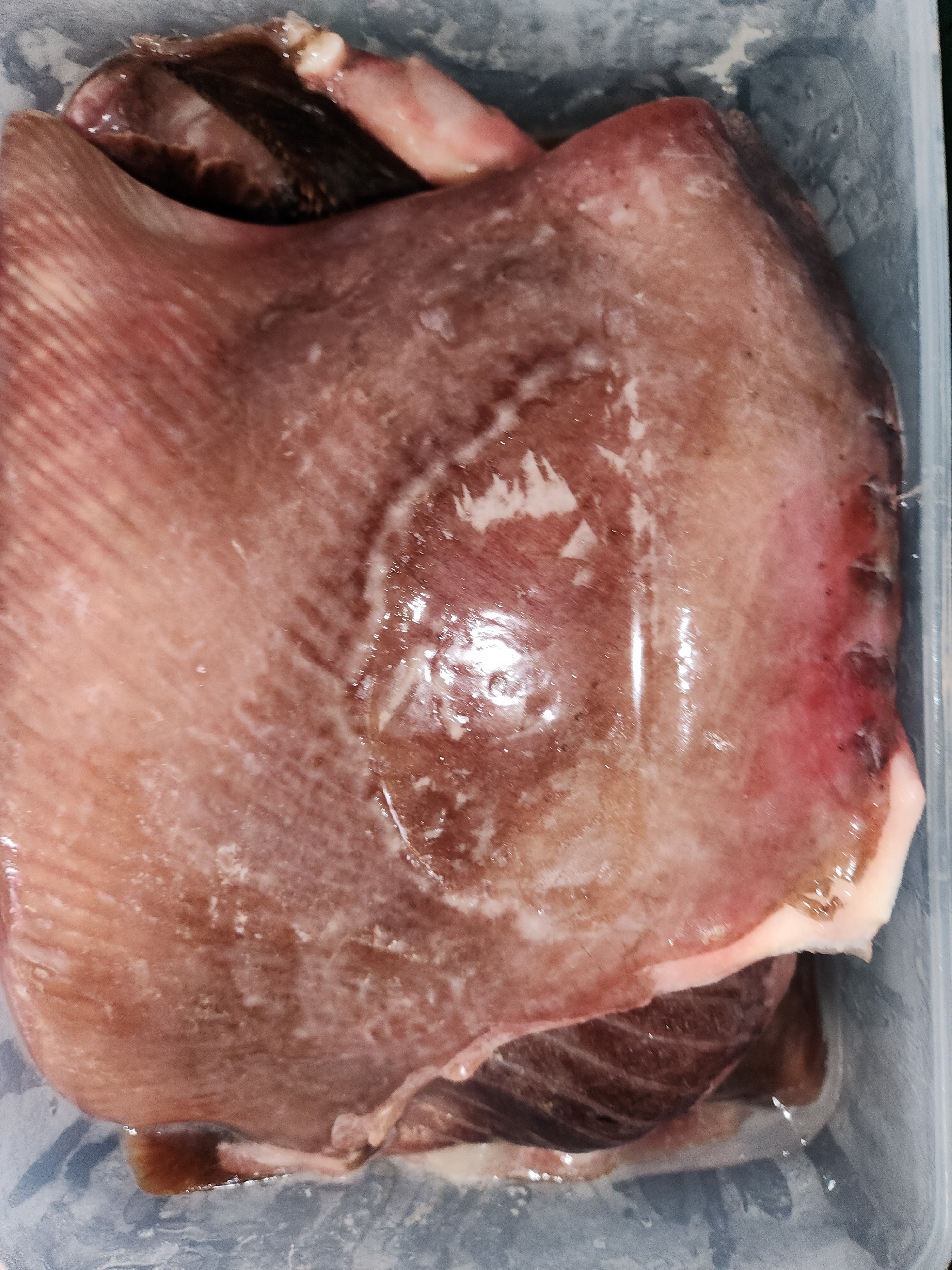 냉동고에 넣을때 비닐에 싸서 넣지 않아 부분 변색된게 있습니다.