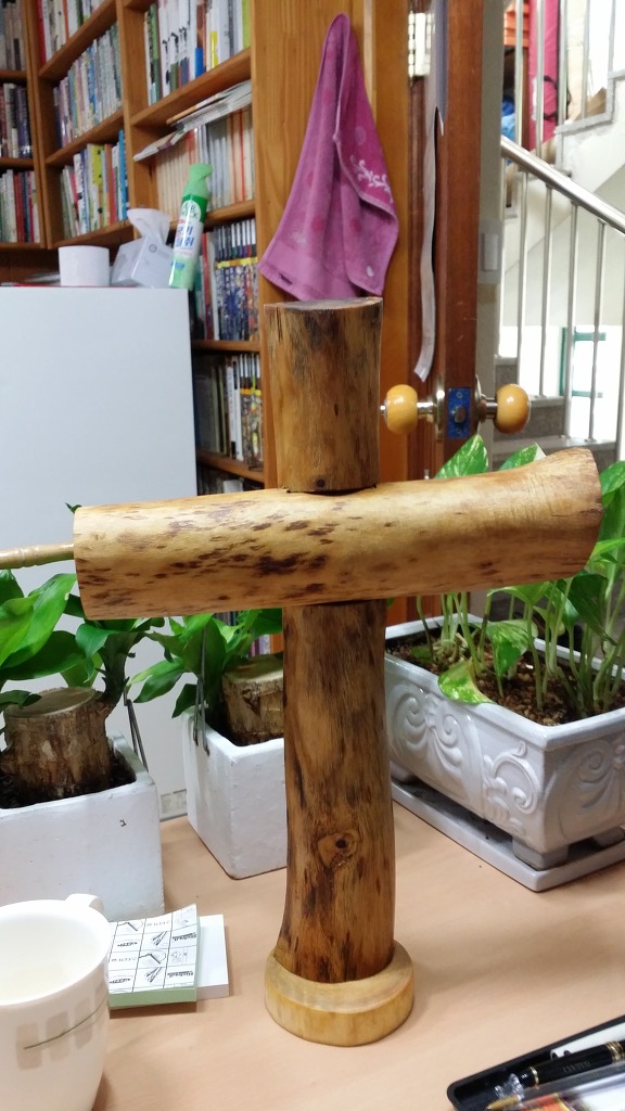 이 십자가는 목포시찰 예촌교회 김지헌목사님이 감사하게도 저에게 선물해 주셨습니다.어느날 손수 가방에 담아 직접 찾아오셔서 주고 간 십자가입니다.목사님께서 제 방에 오셔서 가방을 열고 꺼내놓은 십자가를 본 순간 저는 전율했습니다.