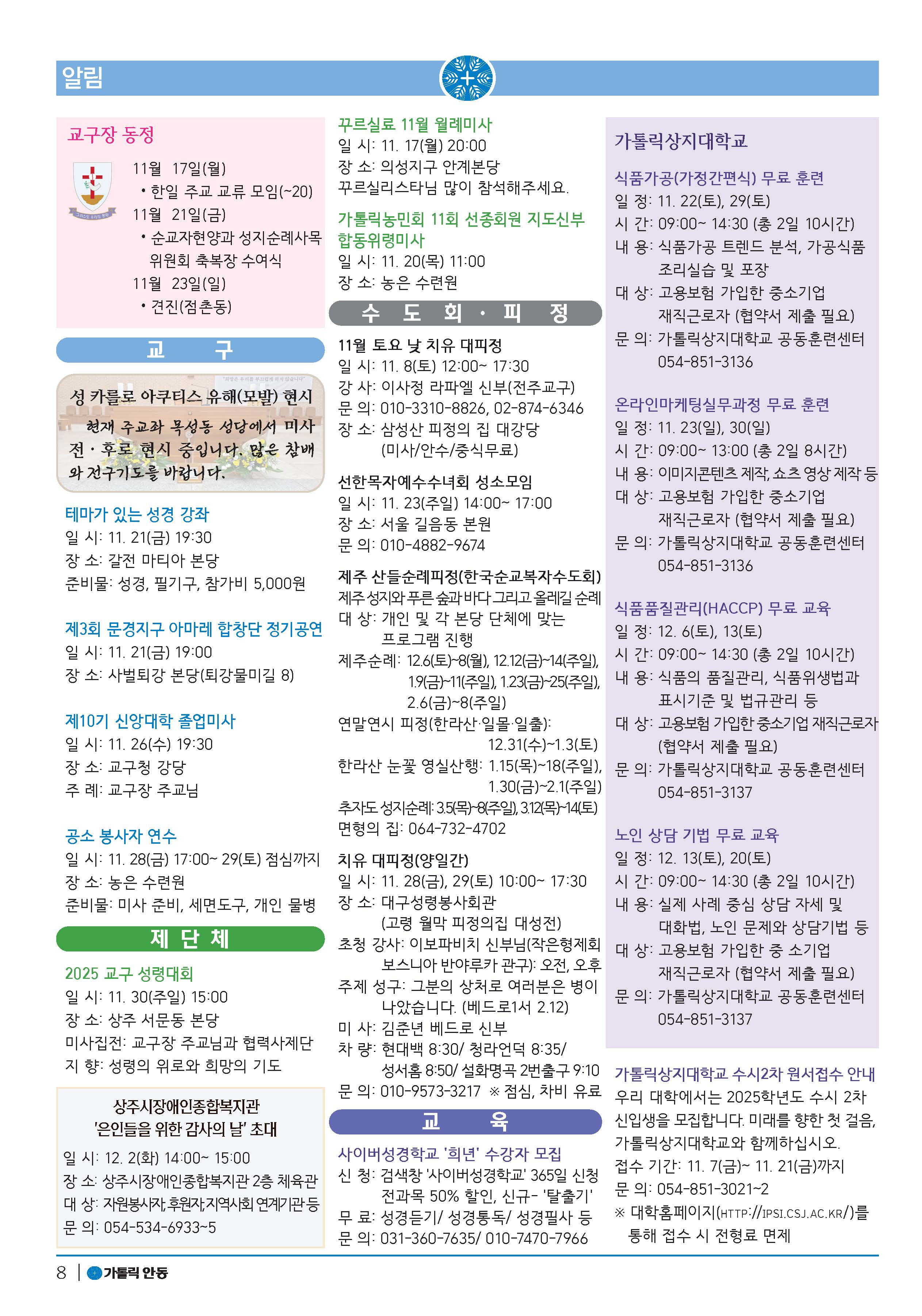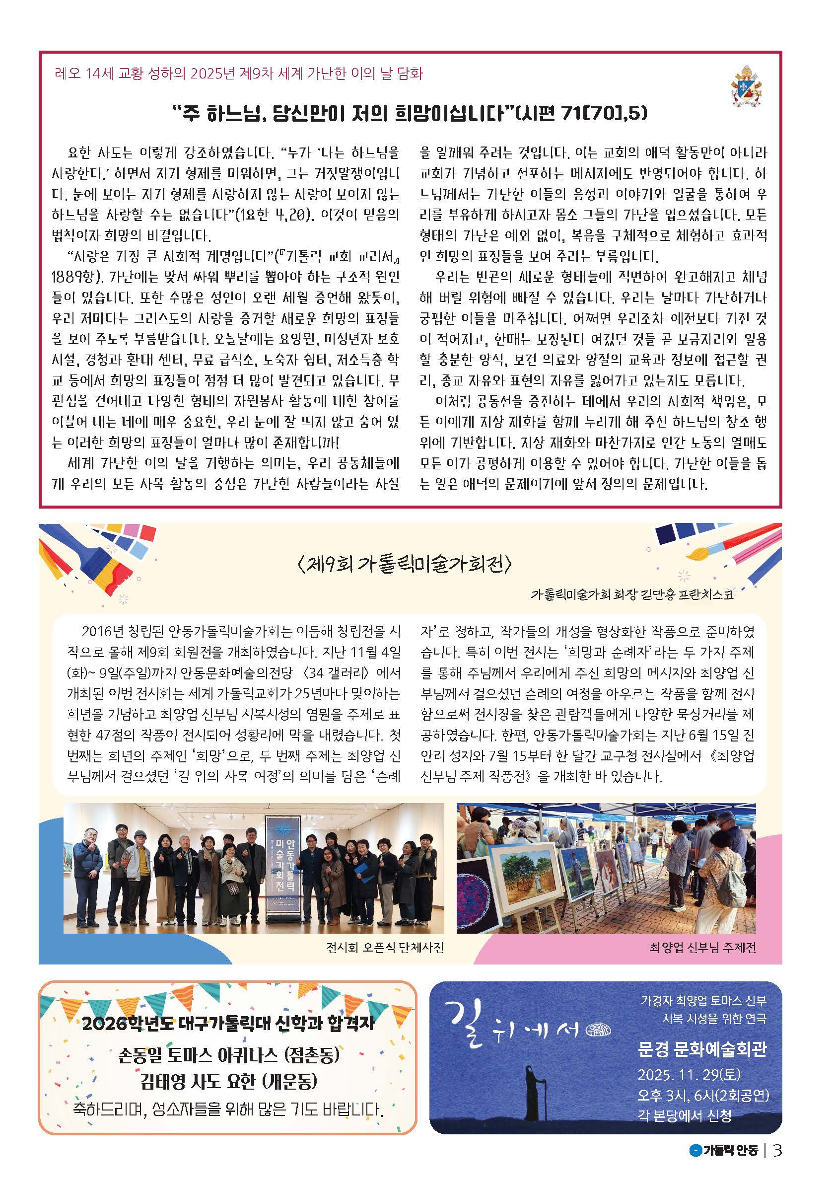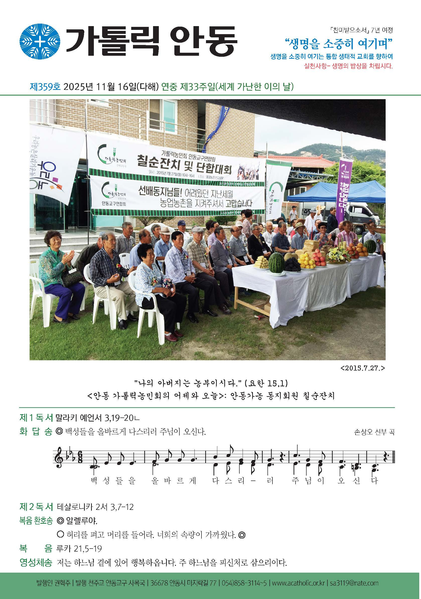 11. 16. 연중 제33주일(세계 가난한 이의 날) 작성자김은경가브리엘라|작성시간25.11.12|조회수151 목록 댓글 0 글자크기 작게가 글자크기 크게가 다음검색 현재 게시글 추가 기능 열기 북마크 공유하기 신고 센터로 신고 댓글 댓글 0 댓글쓰기 답글쓰기 댓글 리스트
