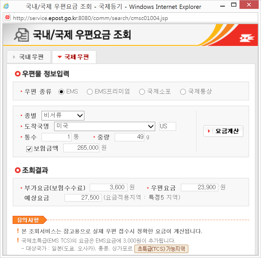 우체국가서 3천원 짜리 일반국제등기로 보내려고 하면, 우체국직원들이 EMS로 보내라고 꼬시기도 합니다 ㅎ -